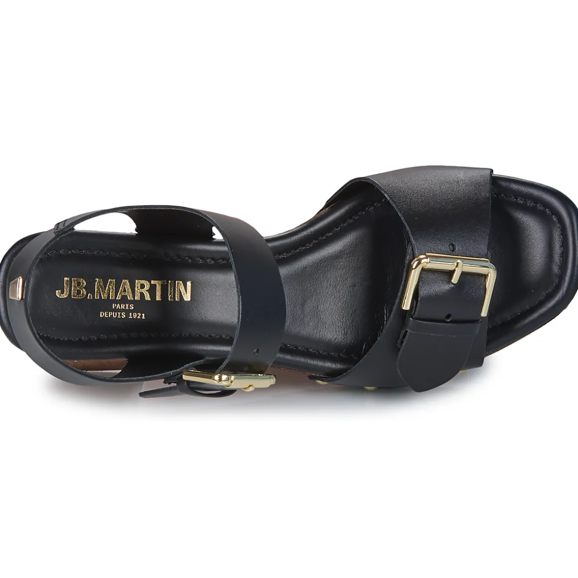 Les deux brides en cuir des nus-pieds Dona de JB Martin sont accompagnées de détails subtils : des boucles de serrage dorées et design ainsi que des rivets sur la semelle effet bois. A porter avec des vêtements vaporeux pour un look audacieux et féminin.