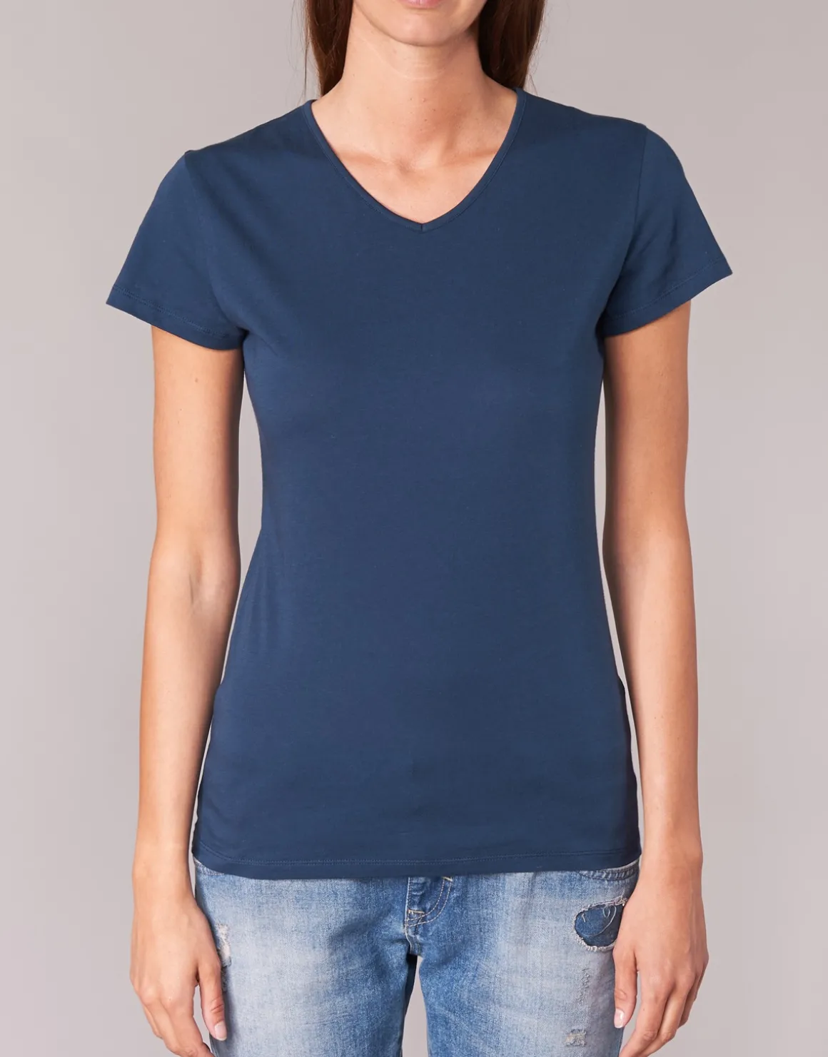 Besoin d’un vêtement facile à porter ? Ce T-shirt à manches courtes et col V signé BOTD a tout ce qu’il faut !Un modèle qui combine coloris bleu et composition en jersey (100% coton 120gr/m2) .On aime son style féminin !
