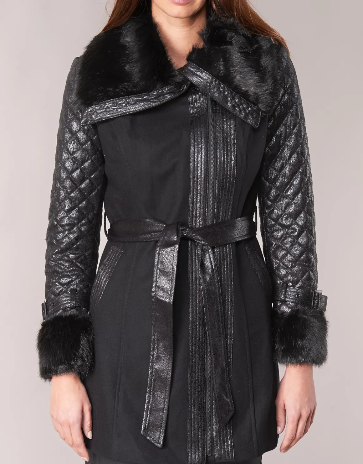 Voici un manteau long imaginé par Morgan qui devrait atteindre une bonne place sur les podiums grâce à ses nombreux détails plus que tendance. En effet, il affiche des détails matelassés, une fermeture asymétrique mais surtout des ornements façon fourrure au col et aux manches.