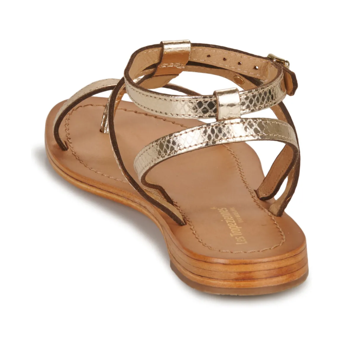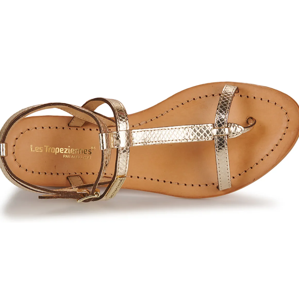 Voici une sandale à entredoigt qui rendra heureuses les amoureuses de la marque Les Tropéziennes par M. Belarbi. Un coloris tendance, une bride de maintien à la cheville, une confection en cuir et nous voici parties pour de nouvelles aventures estivales.