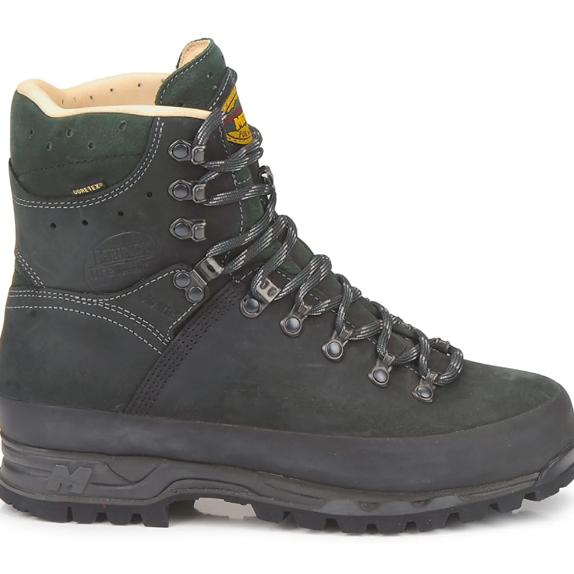 Technologie Air-Active : mousse respirante qui empêche l’humidité de stagner dans la chaussure / Mousse à mémoire de forme MFS (memory foam system) / Première de propreté en laine / Doublure Gore-Tex Performance / Semelle Meindl Multigriff de Vibram