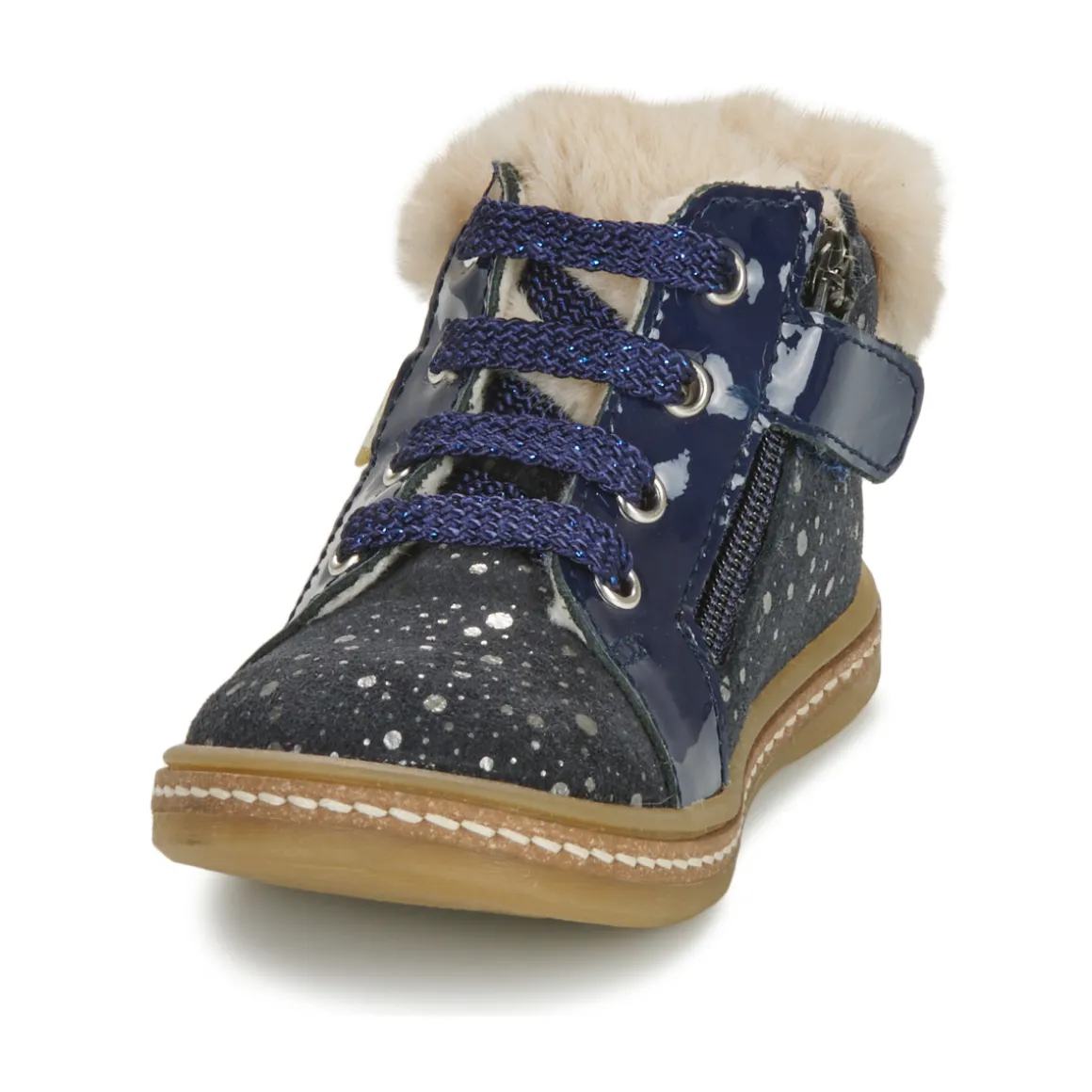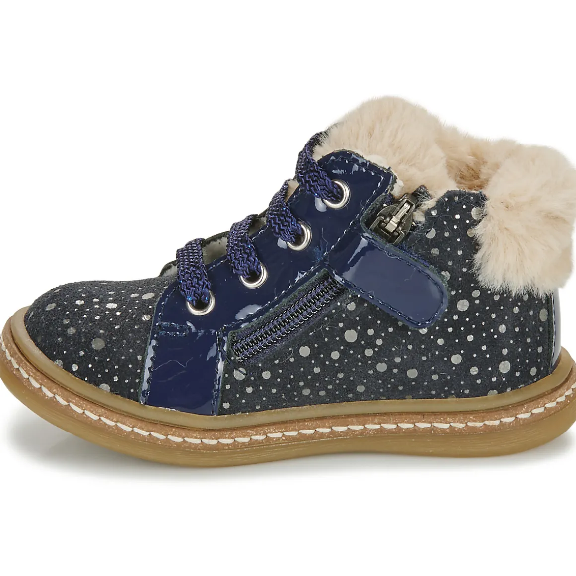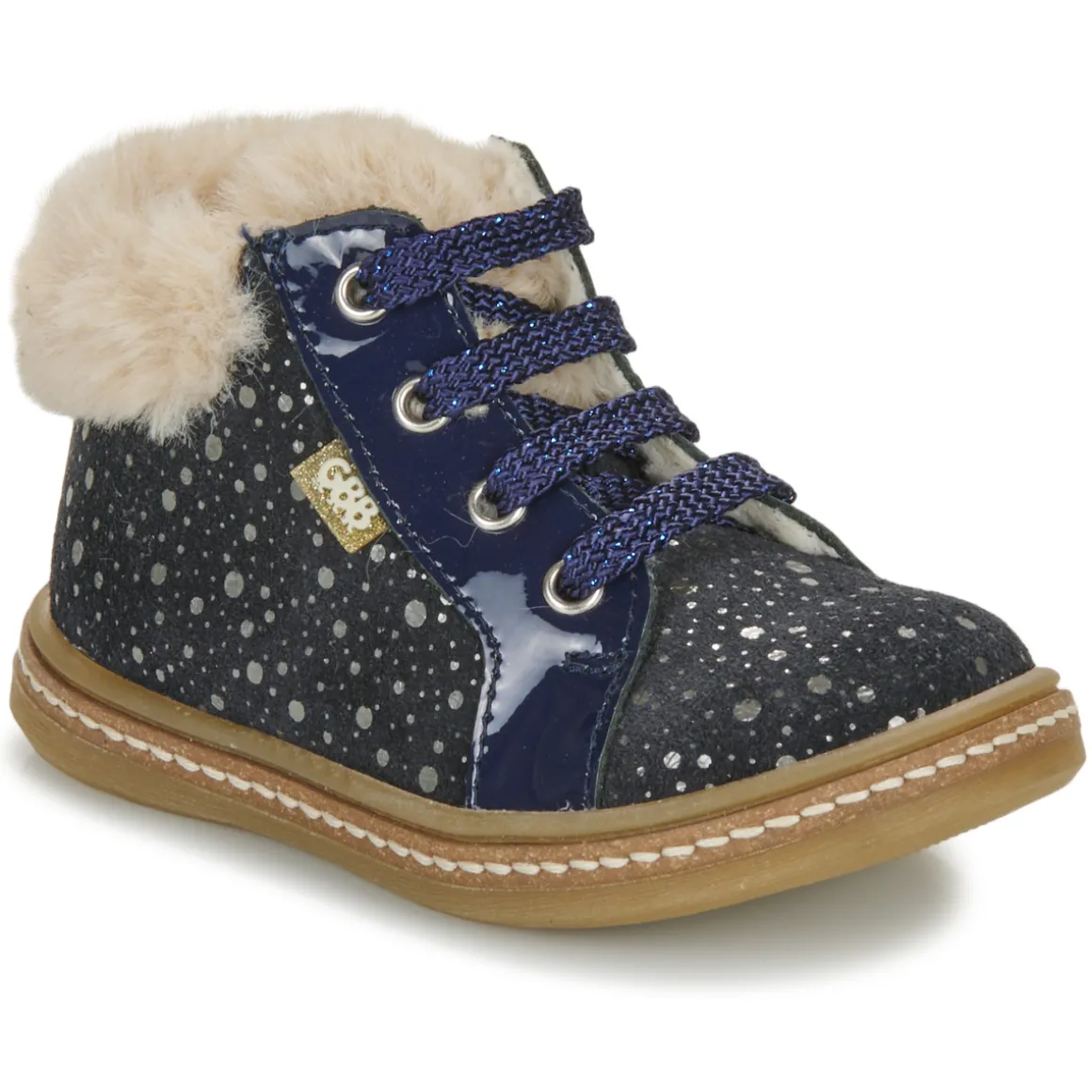 Des pois, du rose poudré et de la fourrure synthétique pour maintenir tout ce petit monde au chaud, c’est là la recette du modèle de baskets montantes Juna proposé par GBB. Une chaleureuse association de bons procédés.