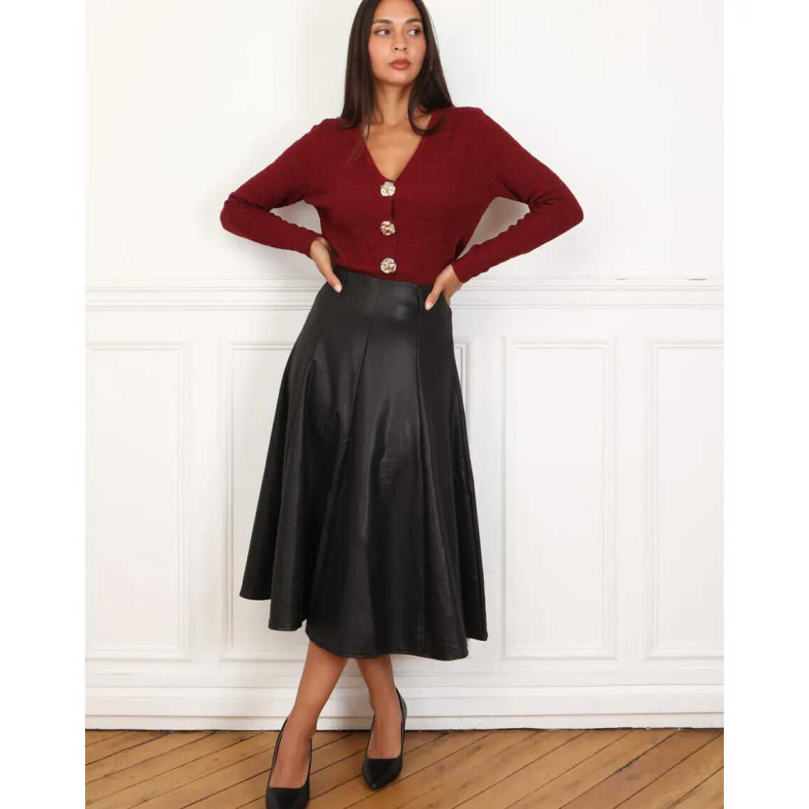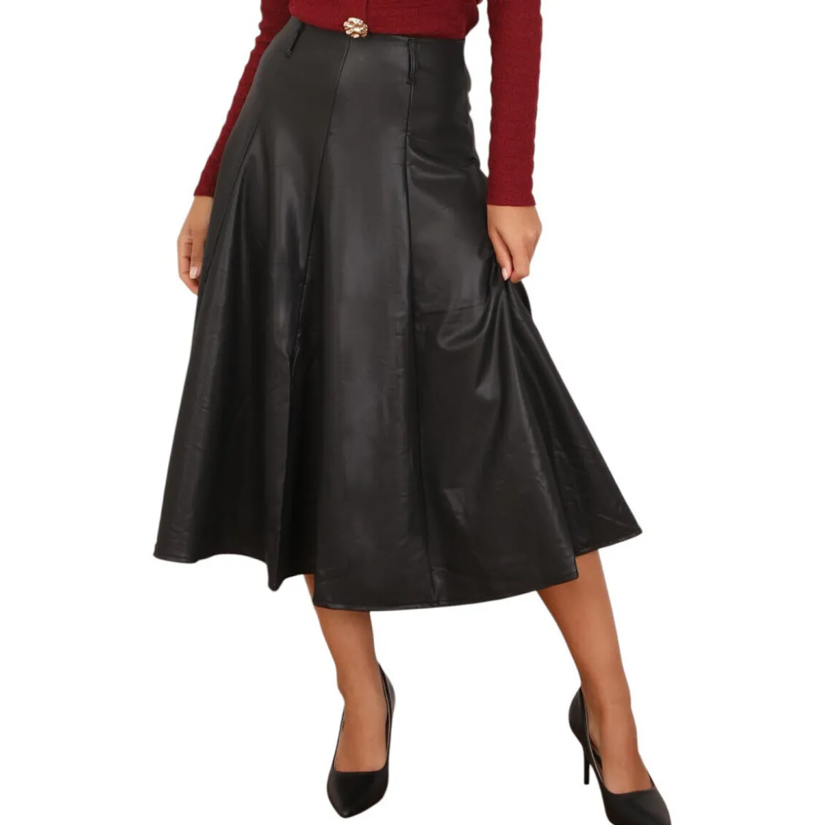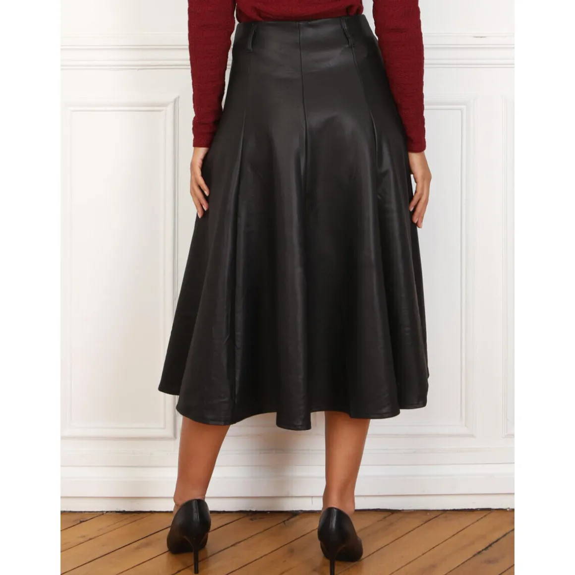 Jupe mi-longue évasée avec fermeture zippée dans le dos.Doublure chaude.