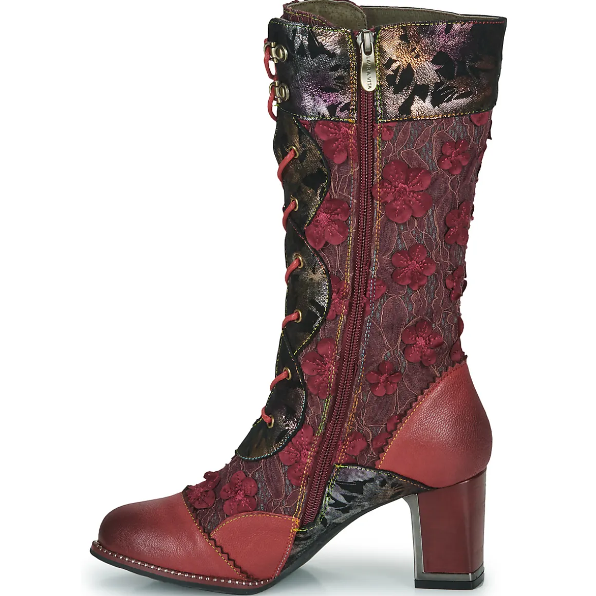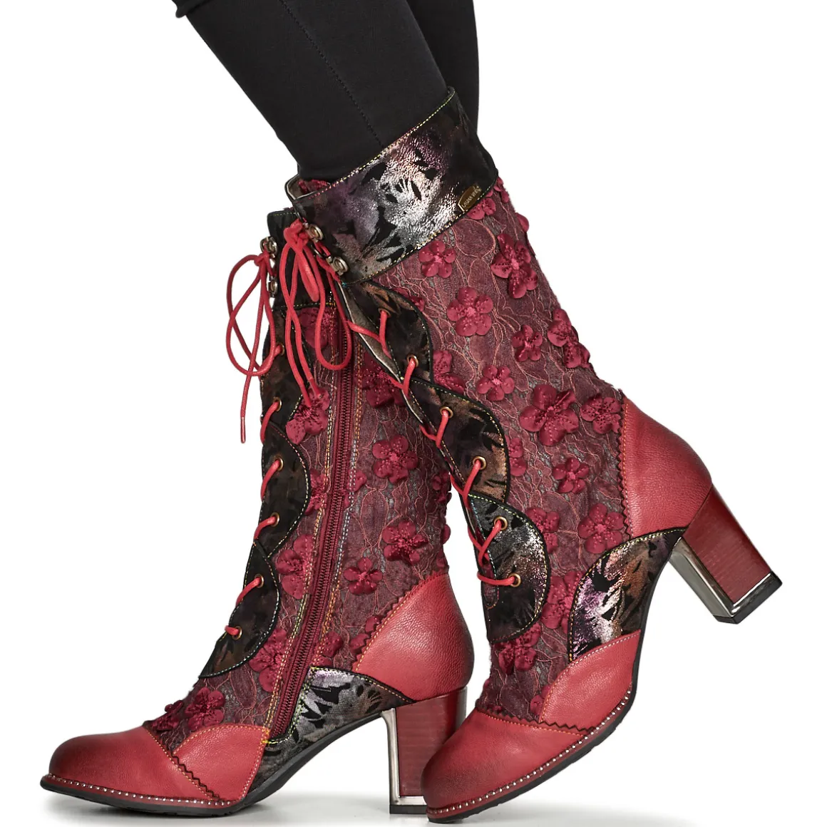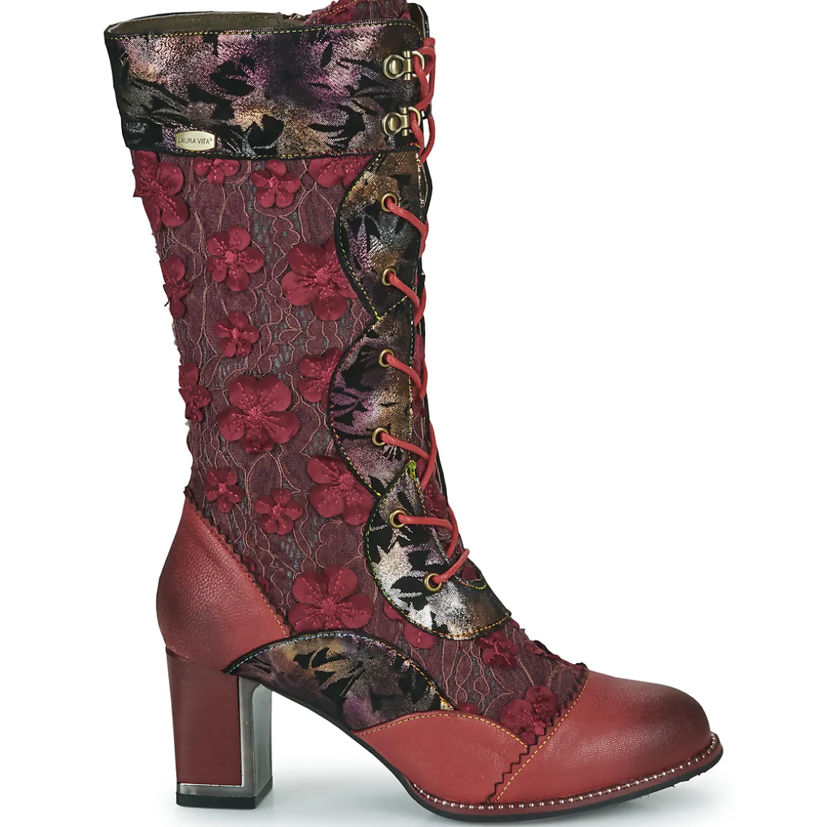 L’esprit ultra féminin de Laura Vita resurgit cette saison avec une botte au joli potentiel. Sa tige rouge en cuir et textile contribue à son esthétique. Elle recèle une doublure en cuir et textile et une semelle extérieure en caoutchouc. L’astuce tendance, c’est de l’associer à une jupe courte, histoire de mettre encore davantage ses gambettes à l’honneur !