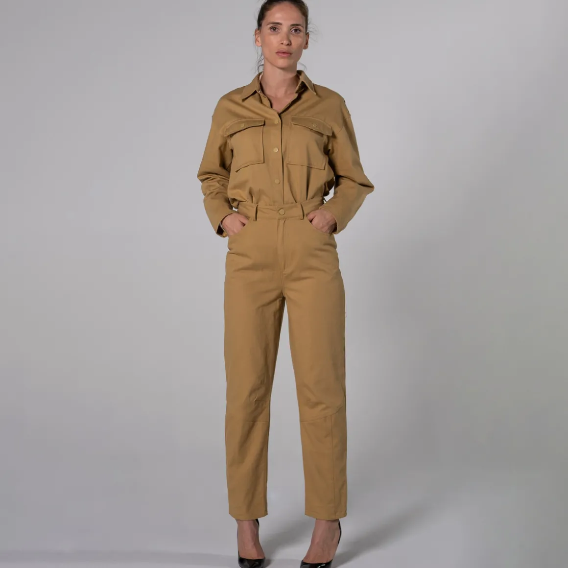 THEAD. se positionne dans la tendance avec ce pantalon beige au look actuel. Son look saura s’accorder à notre style !