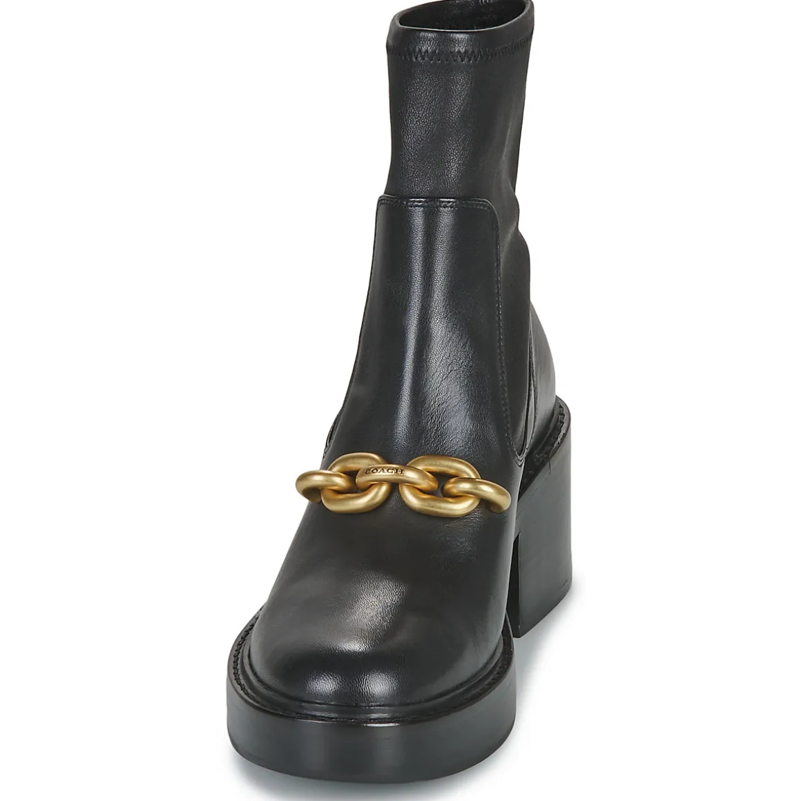 La marque Coach propose une bottine noire aussi tendance que facile à vivre : la Kenna Leather Bootie.A la pointe de la mode avec sa tige en cuir caprin, elle saura se rendre indispensable.Un modèle annoncé comme un petit phénomène qui deviendra grand !