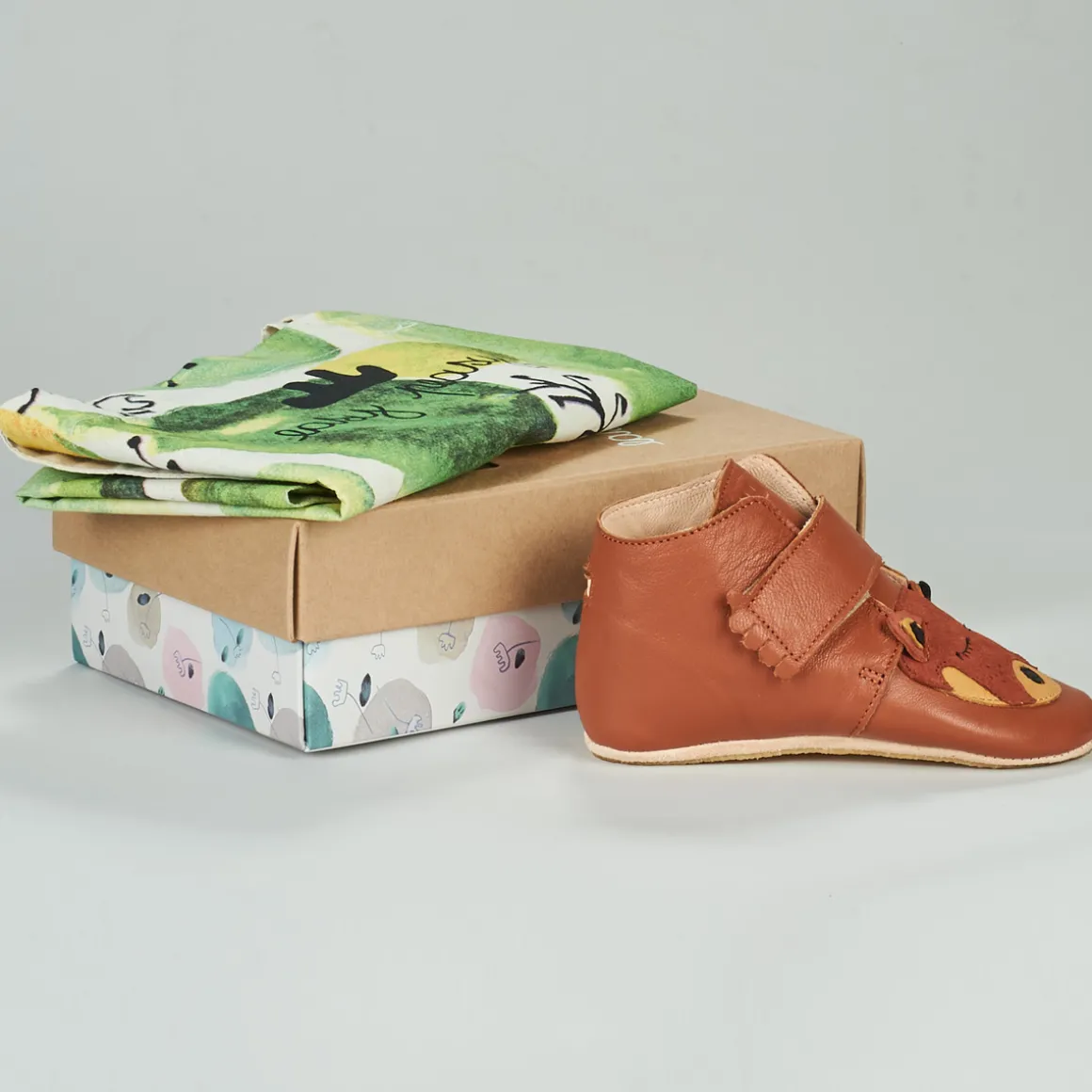 Les chaussons Kiny de Easy Peasy sont spécialement conçus pour les apprentissages bébé debout et marche à l’intérieur de la maison. Solides et résistants, ils épousent parfaitement les pieds des plus petits et leur garantissent un confort de qualité. Ils se dotent d’une semelle intérieure en hévéa naturel pour le confort et l’isolation. La semelle extérieure est quant à elle en cuir velours avec un patin en crêpe antidérapant. Les chaussons sont livrés avec un tote bag et une boite ludique, ce qui en fait un cadeau de naissance idéal ; original et écologique !