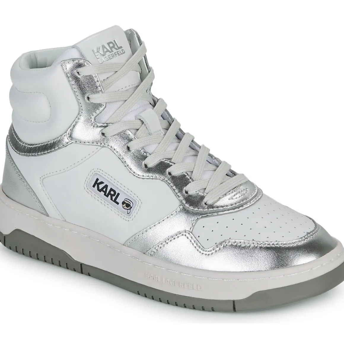 Cette basket montante Karl Lagerfeld, c’est le tout nouveau modèle qui fait du bruit dans le cercle très prisé des sneakers addicts ! Une tige en cuir et textile et une couleur blanche : c’est le tandem gagnant qui y réside. Montée sur une semelle en caoutchouc, elle renferme une doublure fabriquée en synthétique et textile. Un modèle qui deviendra sans aucun doute une icône de la collection en cours.