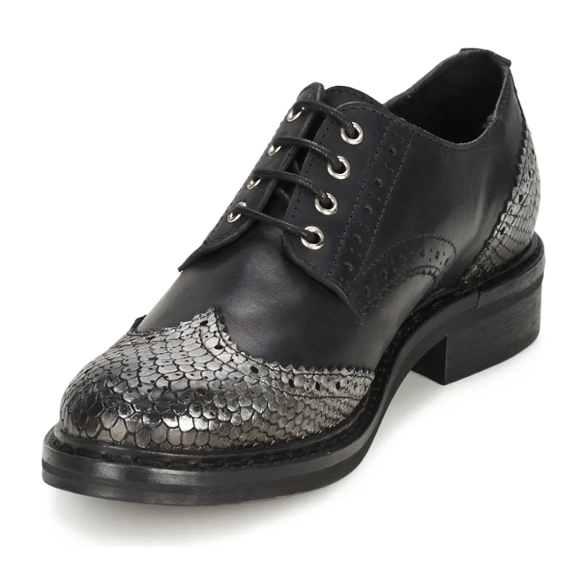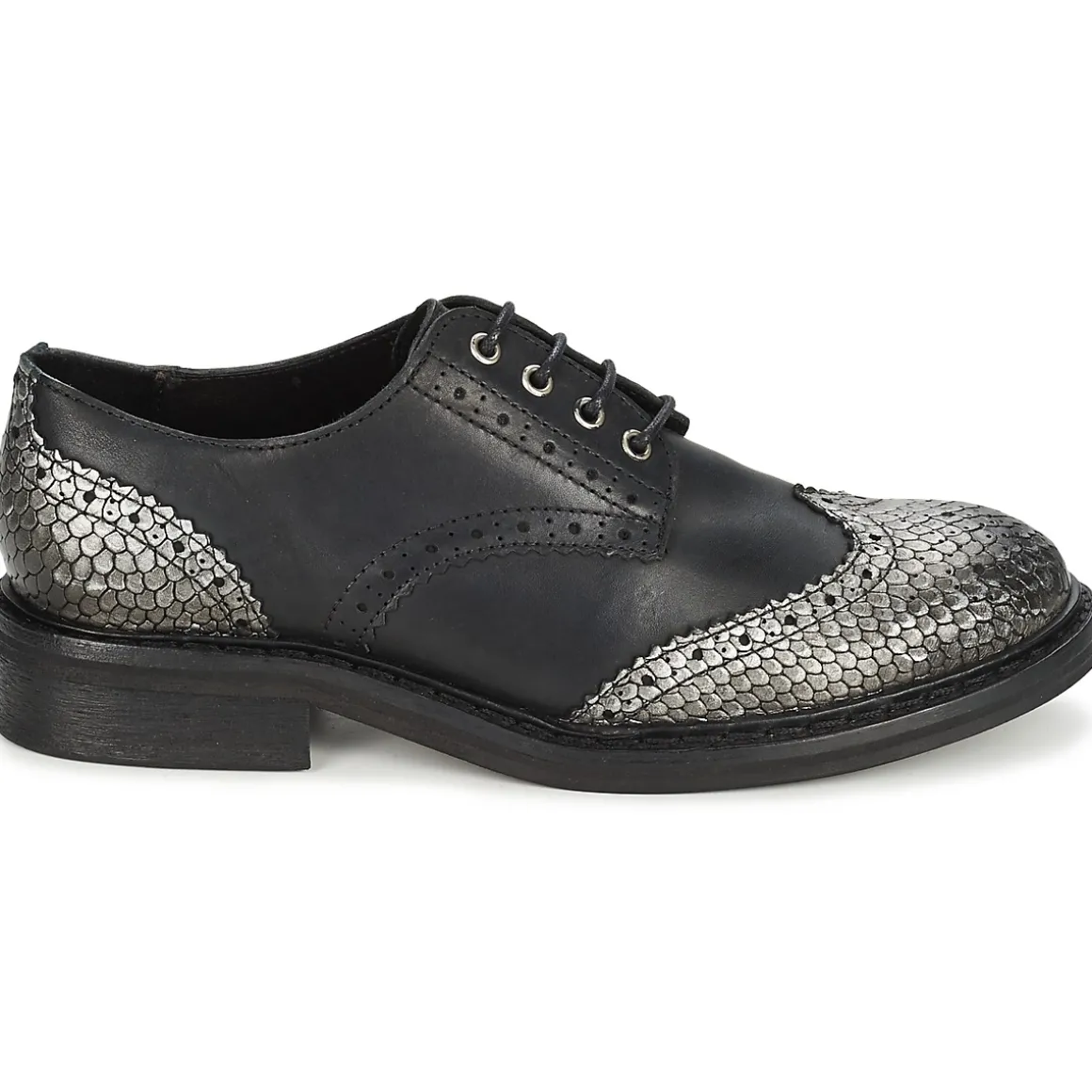 C’est une paire de derbies très wild que nous propose la marque Koah. Intitulées ‘Lester’, elles affichent en effet, en plus de leur composition cuir de qualité, un motif d’écailles argenté sur leur bout et leur arrière !