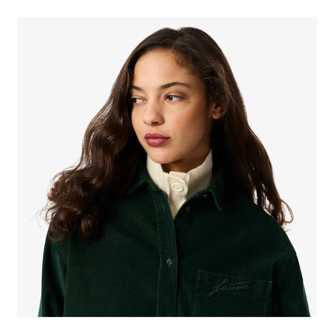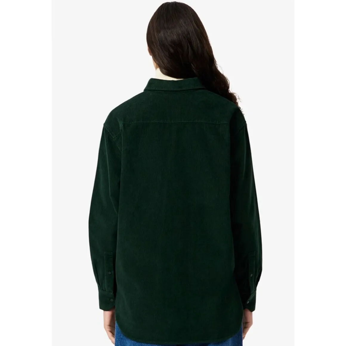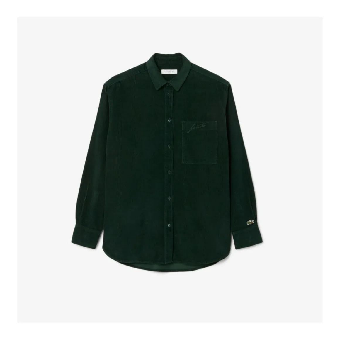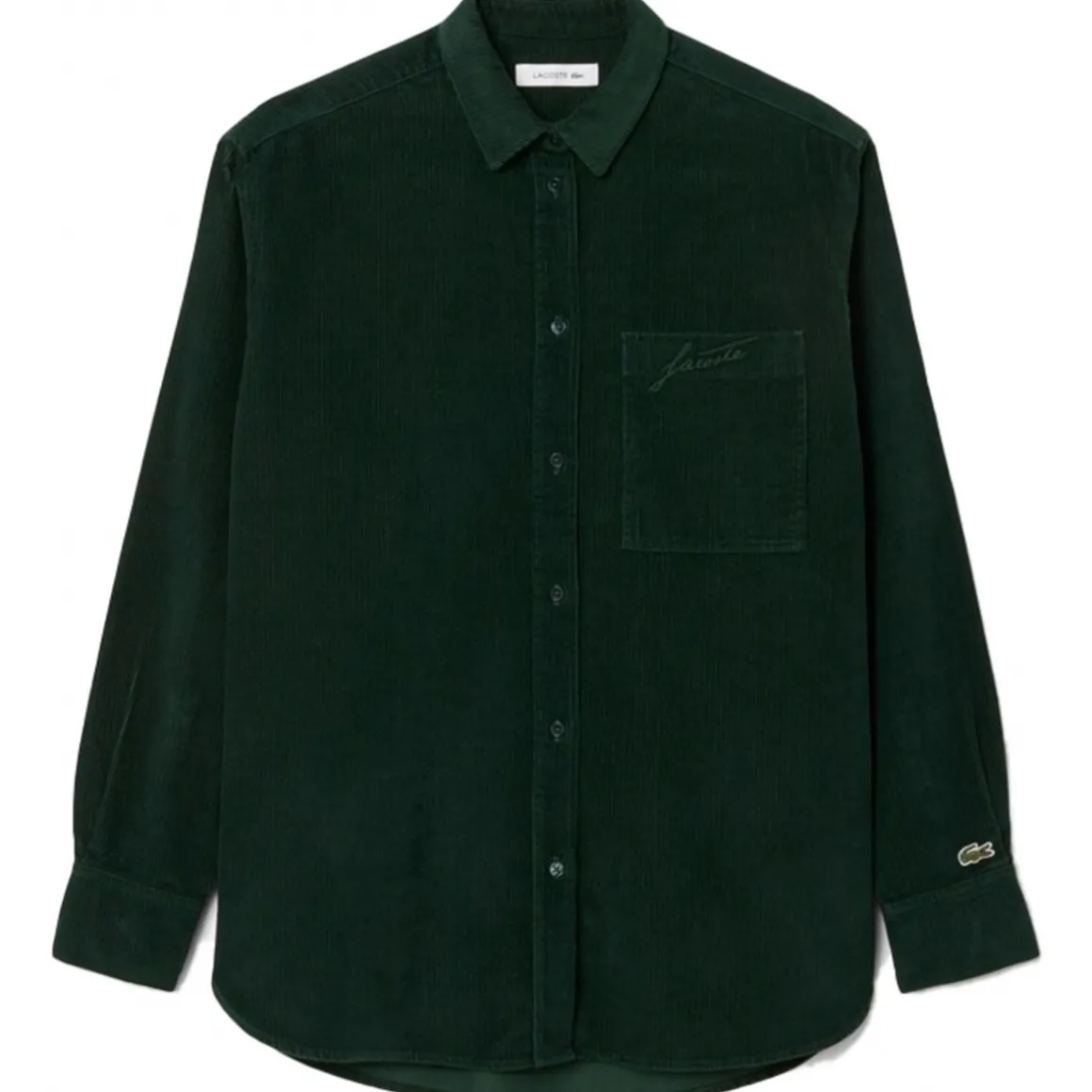 CF5336 LONG SLEEVED SHIRT Adopta los íconos del otoño: un tributo a la elegancia del sportswear francés parte de nuestro ADNCorte oversize: ajuste amplio en el cuerpo y hombros caídos100 % algodón – pana suaveBolsillo en la parte superior izquierda del pechoCocodrilo verde bordado de 2 5 cm cosido sobre el bolsillo y bordado « Lacoste » al tonoLa camisa perfecta para un look casual e invernal; también puede usarse como overshirtSe puede combinar en conjunto con el modelo HF5346 Materiales & cuidado Tejido: 100 % algodónLavar a máquina a máximo 30 °C con colores similaresNo usar blanqueadorPlanchar a temperatura mediaNo secar en secadoraNo lavar en seco