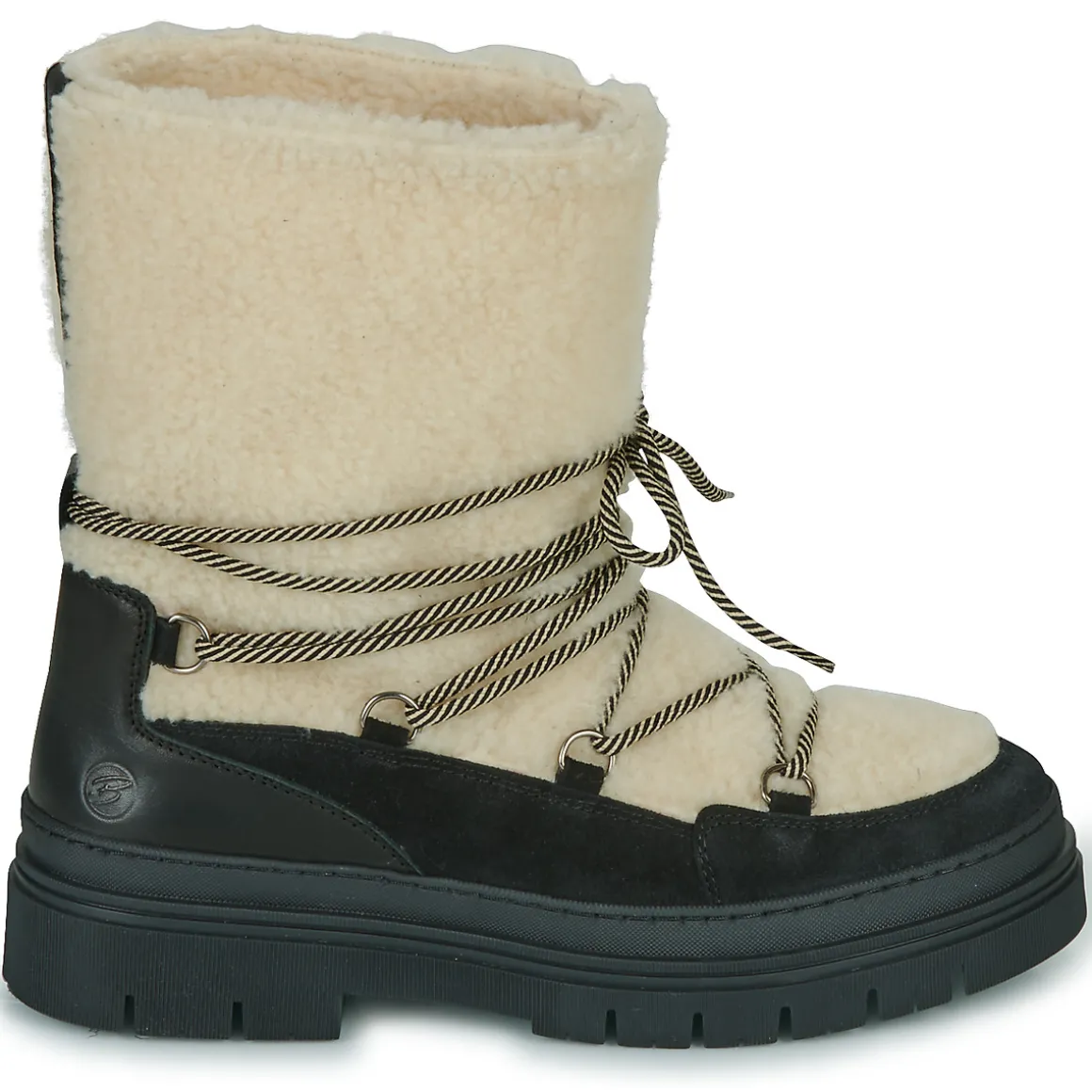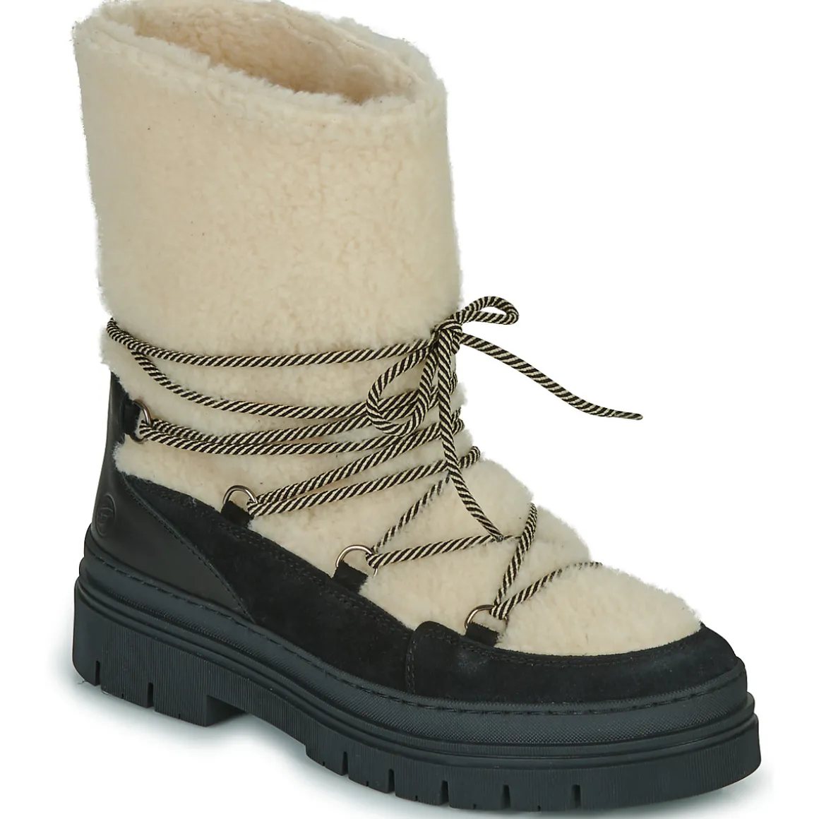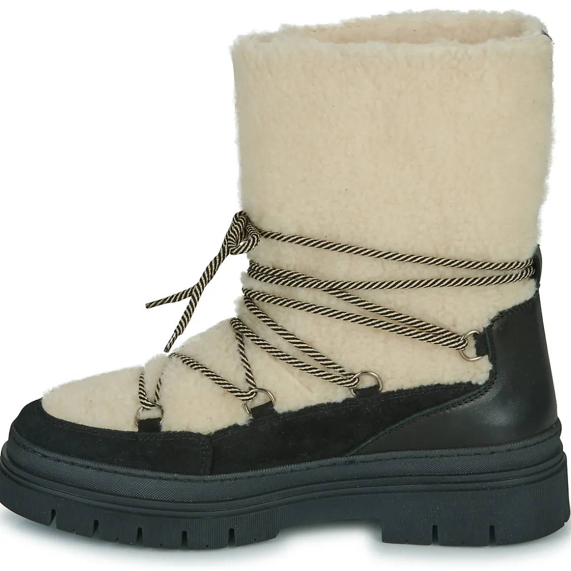 L’aventure polaire est à la portée de vos pieds grâce à cette botte de neige Betty London. Plus seulement cantonnée aux stations de sport d’hiver, elle se pare d’une tige imperméable en daim noir. Grâce à sa semelle antidérapante en synthétique, le verglas et la neige passeront de terrains dangereux à terrains de jeux !