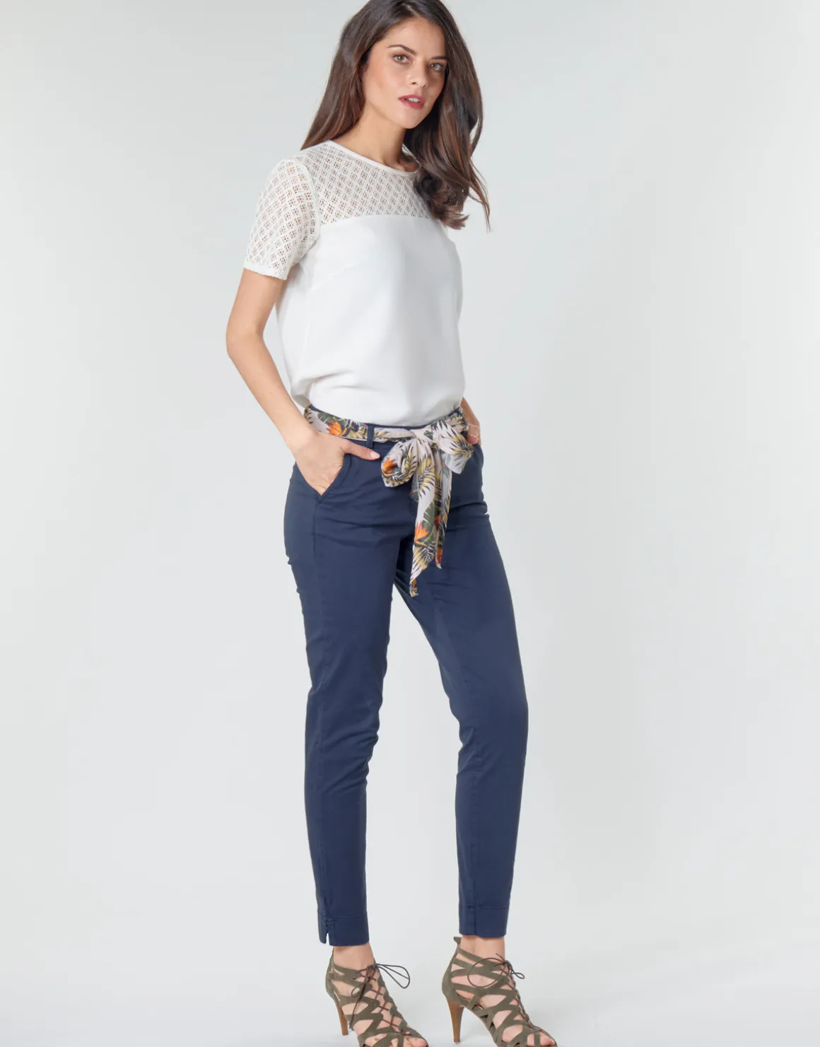 Décliné dans un esprit bohème avec sa ceinture foulard, ce pantalon présente une coupe féminine et tendance. Un modèle phare du dressing cette saison. Merci Betty London !