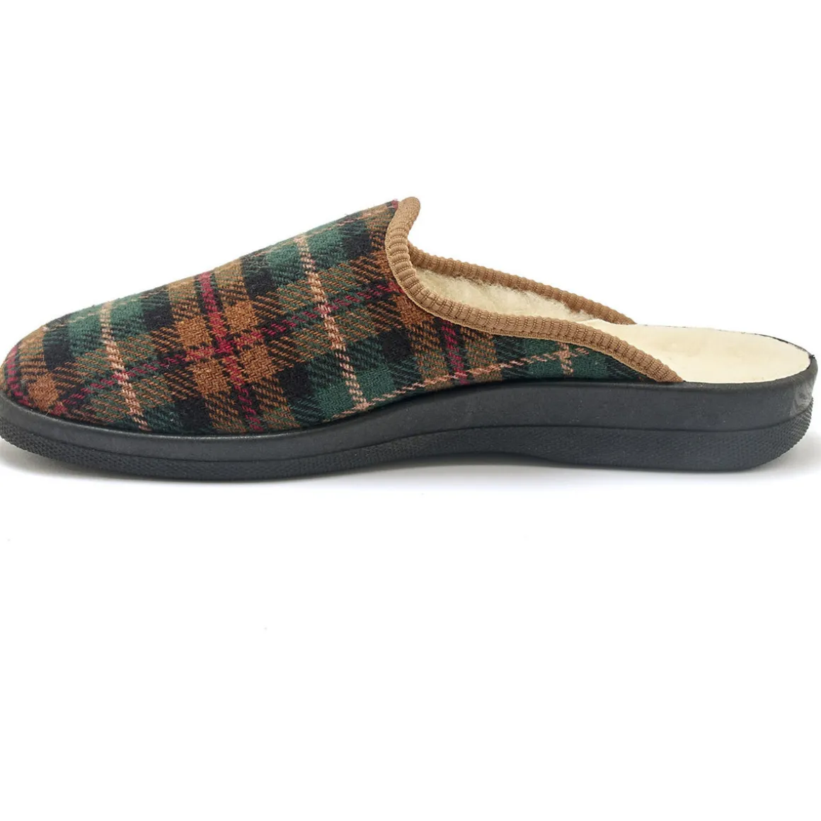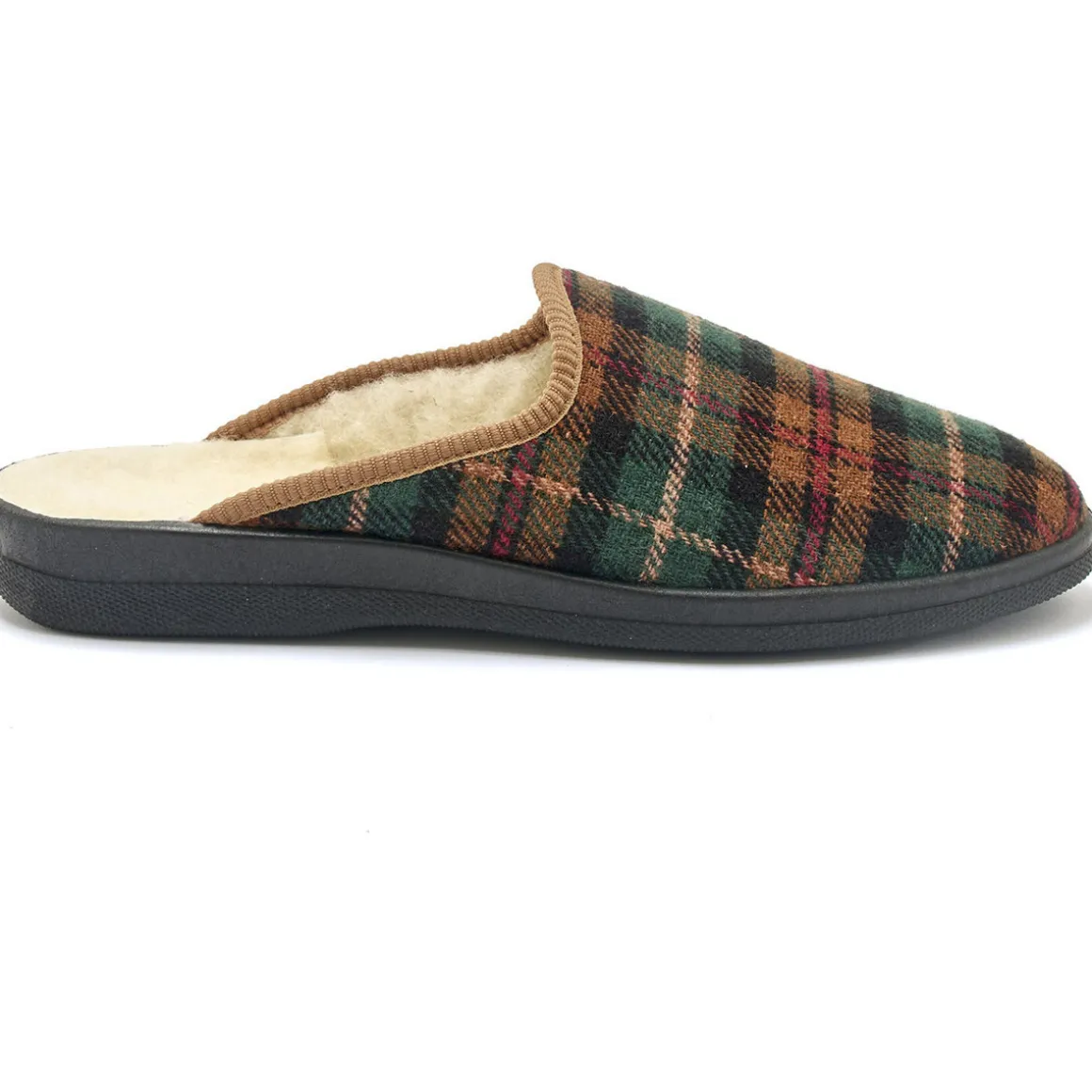 Les mules mixtes fourrées laine majoritaire. Dessus : textile. Semelle : élastomère. Grande largeur. Fabriquées en Europe.