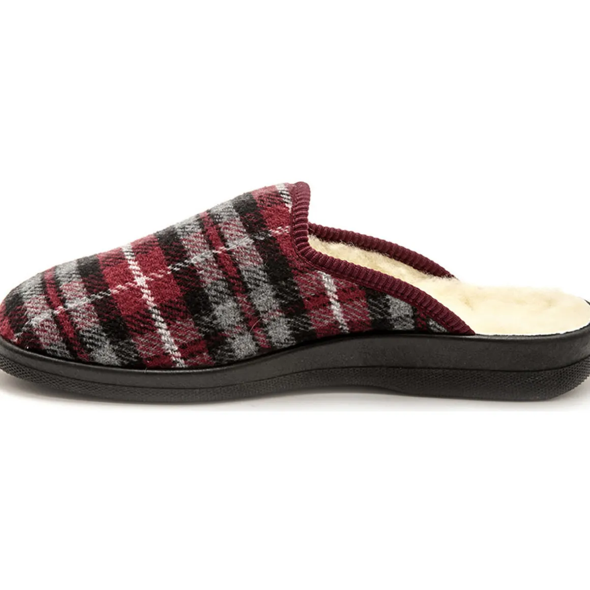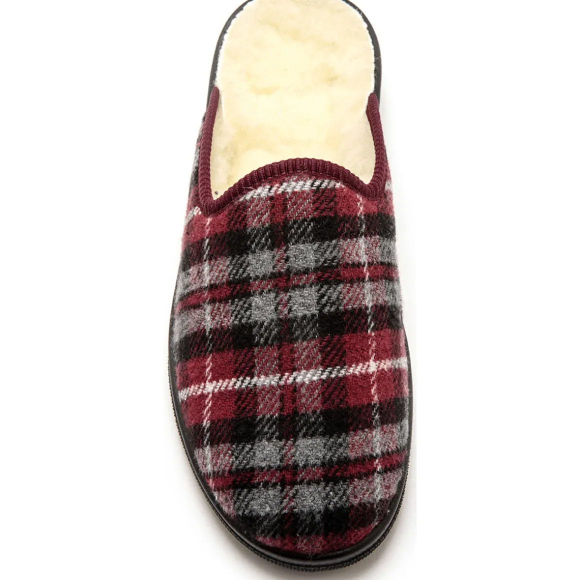 Les mules mixtes fourrées laine majoritaire. Dessus : textile. Semelle : élastomère. Grande largeur. Fabriquées en Europe.