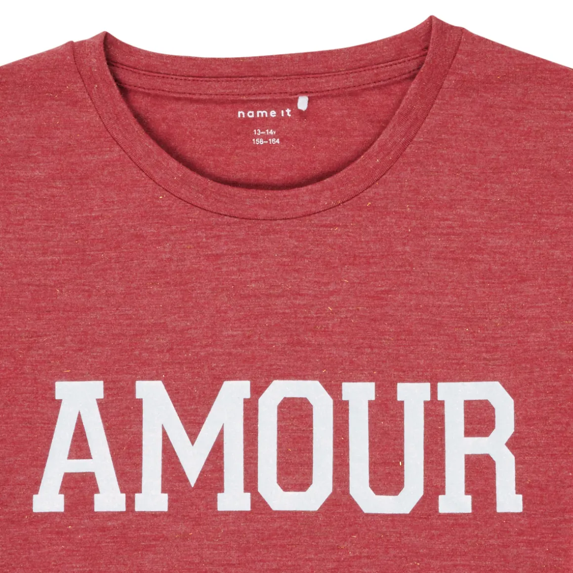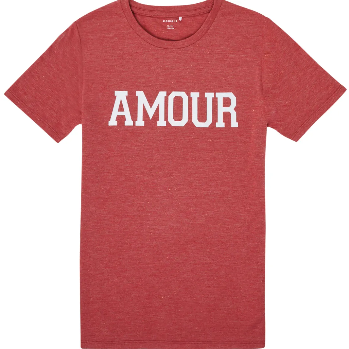 Jamais sans mon T-shirt à manches courtes Name it !’ Voilà ce que pourraient dire nos enfants.Sa couleur rouge et son imprimé « AMOUR » s’adapte facilement à vos tenues. Une création en parfaite symbiose avec les codes stylistiques du moment.