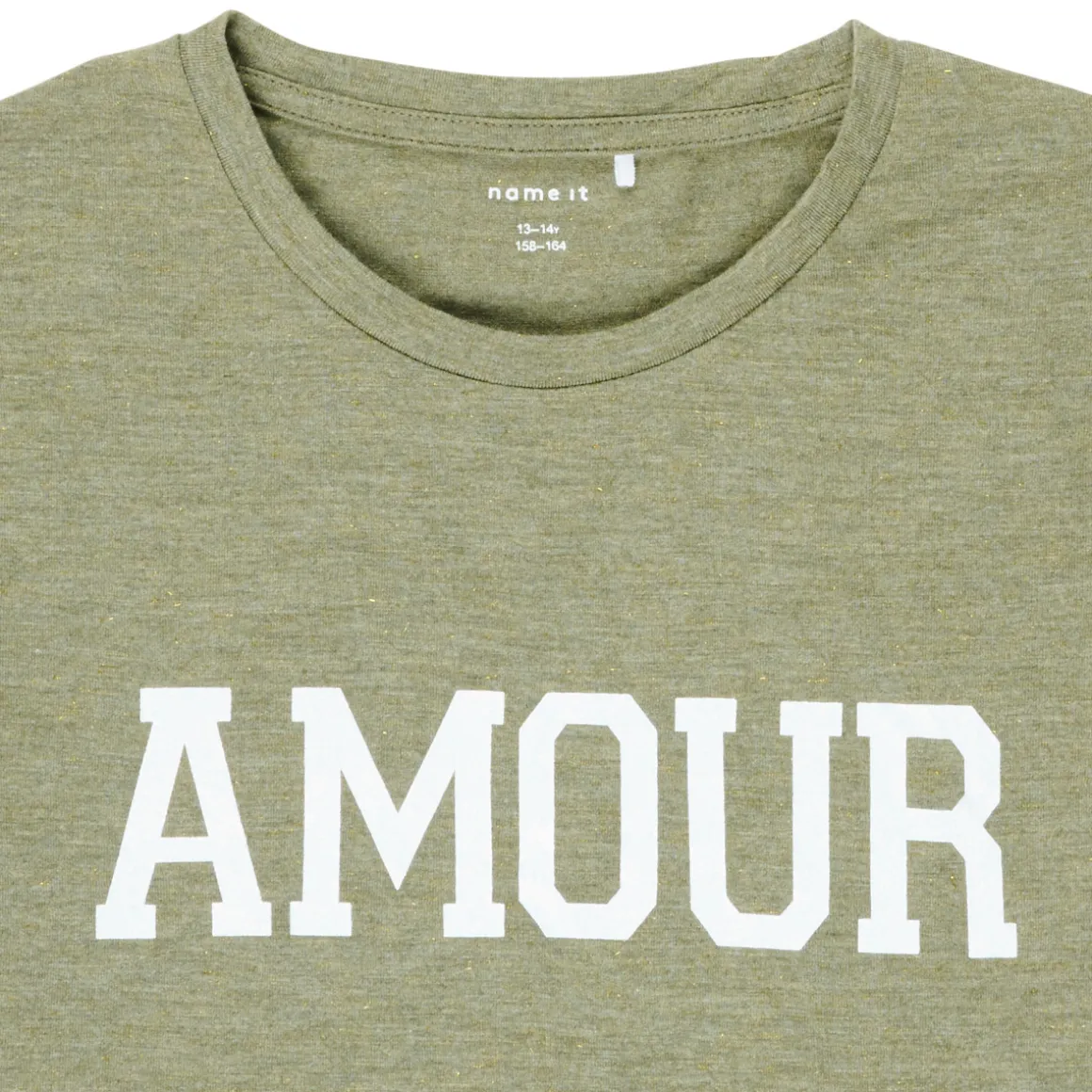 Dans chaque dressing d’enfant devrait se trouver au moins un T-shirt à manches courtes Name it.Sa couleur kaki et son imprimé « AMOUR » seront trouver une place dans votre dressing. Un indispensable à s’accaparer sans plus attendre !