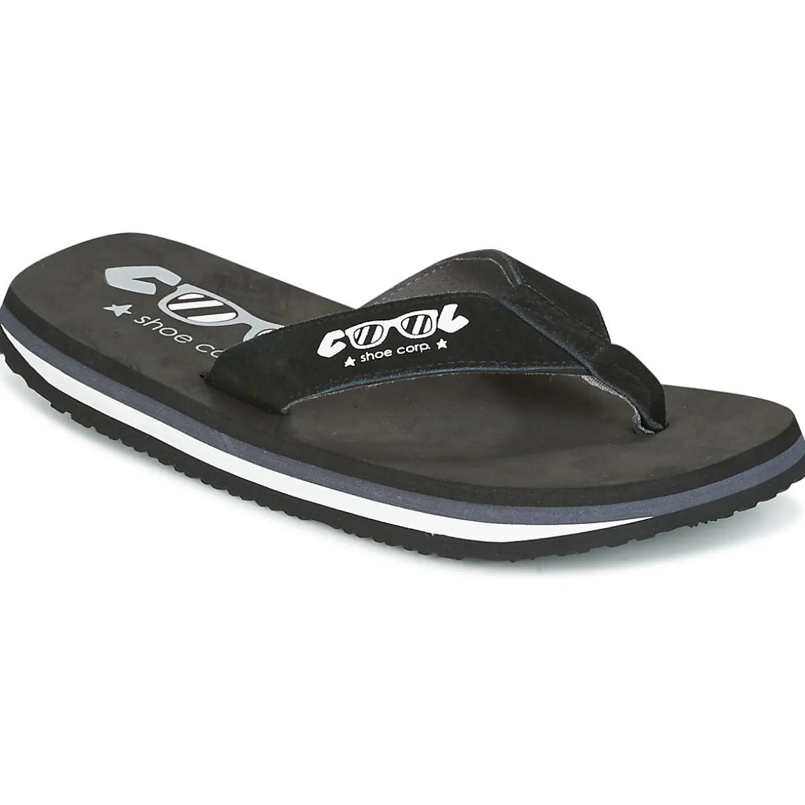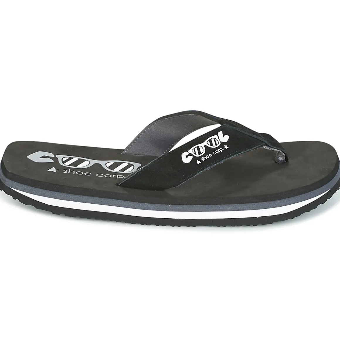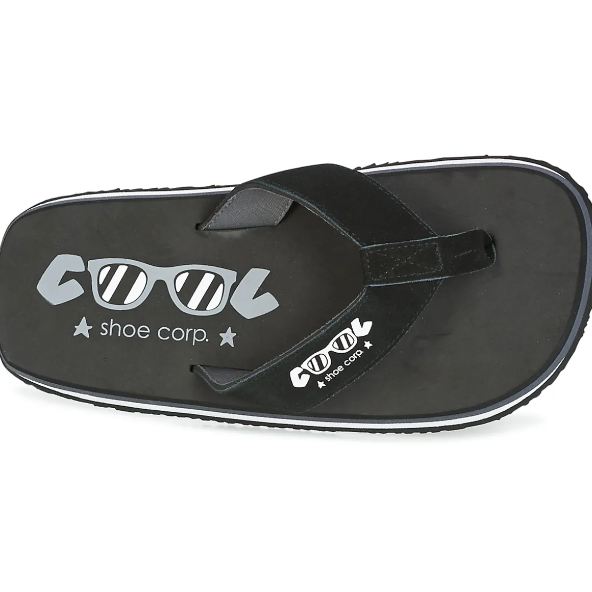 Semelle en caoutchouc et EVA amortissant / A ce jour plus aucune utilisation de plastique chez Cool Shoe. La fabrication des tongs de le marque comportent 30% d’ EVA recyclé.