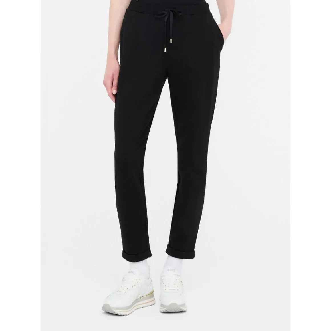 Pantalon de jogging noirRéalisé en molleton de coton stretchLarge bande élastique avec cordon de serrage à la taillePoches sur les côtés
