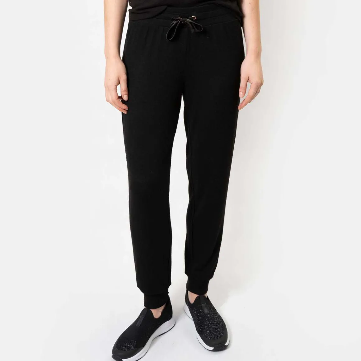 Ce pantalon jogger pour femme de couleur noir est un indispensable pour passer l’hiver confortablement chez soi ou pour faire du sport. Son élégant cordon satiné et ses bords côtelés donnent de jolies finitions à ce pantalon jogger noir. Incroyablement doux, ce pantalon jogger femme est composé majoritairement de viscose ECOVERO™.Composition : 80% Viscose, 17% Polyester, 3% Elasthanne