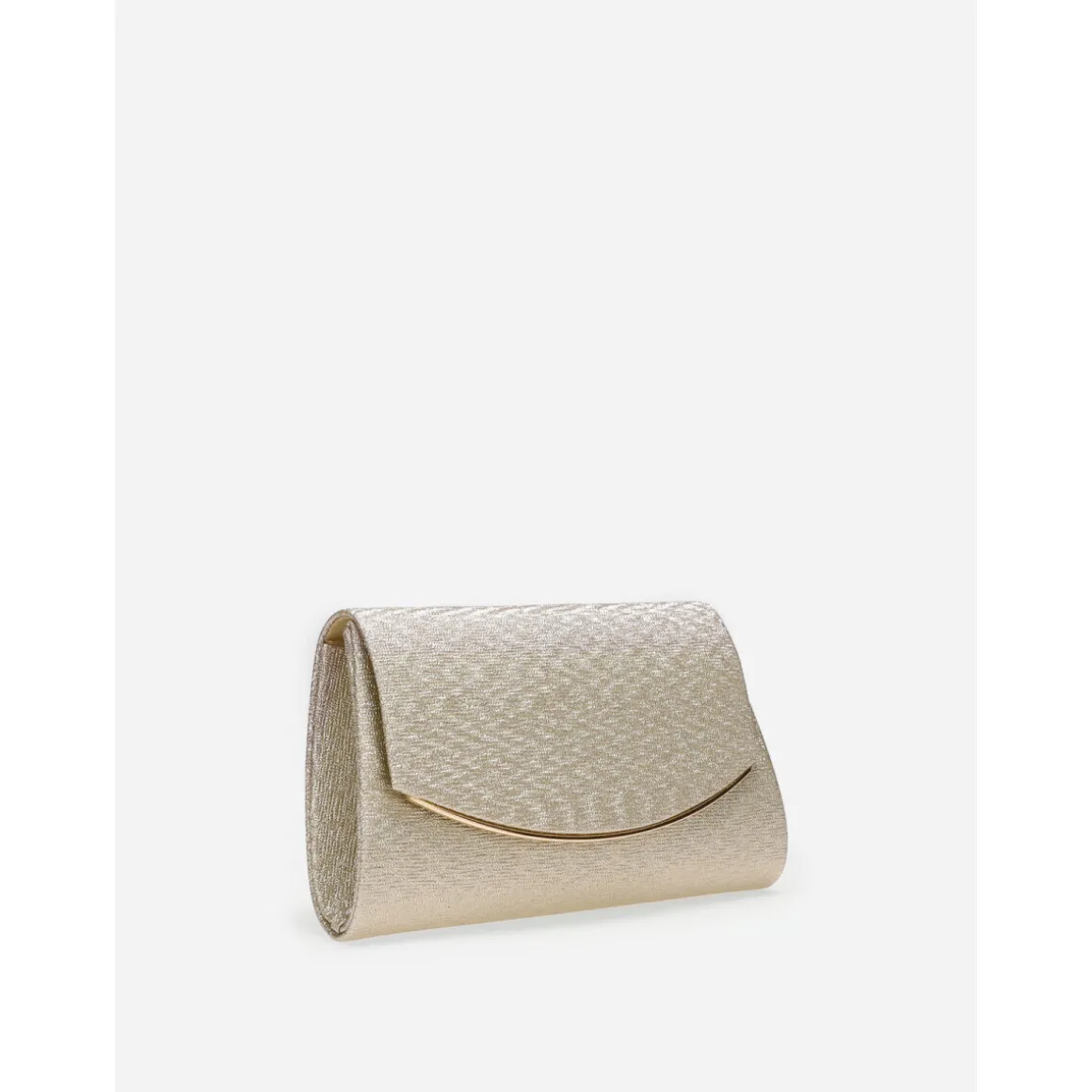 Pochette texturée style irisé.Rabat arrondi avec bord métallique.Se ferme par un bouton pression.Dotée d’une anse chaîne amovible.Intérieur satiné avec poche plaquée.