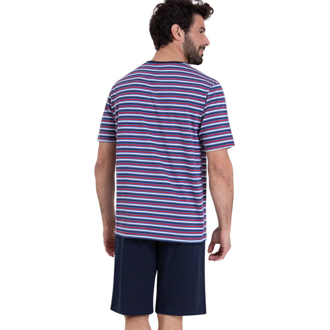 Caractéristiques de ce pyjama ATHENA RAYURES WAVES court col O, Poche poitrine sérigraphiée sur le haut, Short de pyjama uni, Haut de pyjama court rayé, Rayures fils teints, Bande de propreté dans col, Cordon de serrage et poches, Jersey 100% coton respirant, Label OEKO-TEX® standard 100 : garantit l’absence de substances nocives pour la santé, Livré en boîte carton