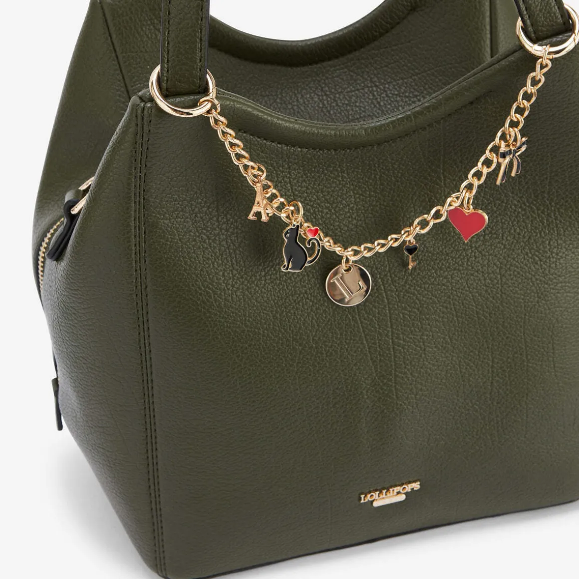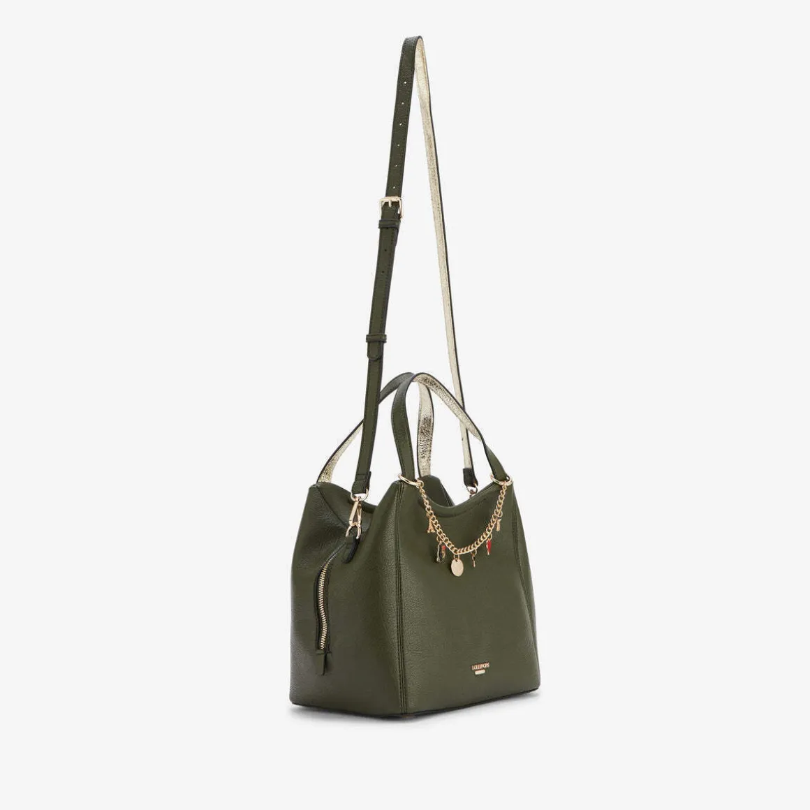 Sac shopper kaki en synthétique effet grainéLogo Lollipops doré en relief à l’avantChaine charms amovible et transformable en poignée de téléphoneDeux anses porté mainBandoulière réglable et amovibleUne poche zippée à l’arrièreUne poche zippée à l’intérieurUne poche zippée et deux poches plaquées à l’intérieurHauteur : 17,5 cmLargeur : 16 cmLongueur : 20,5 cmCollection : Roselaine