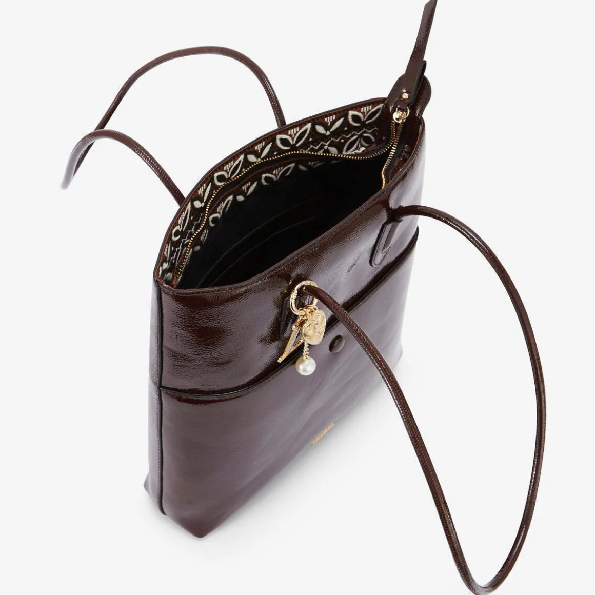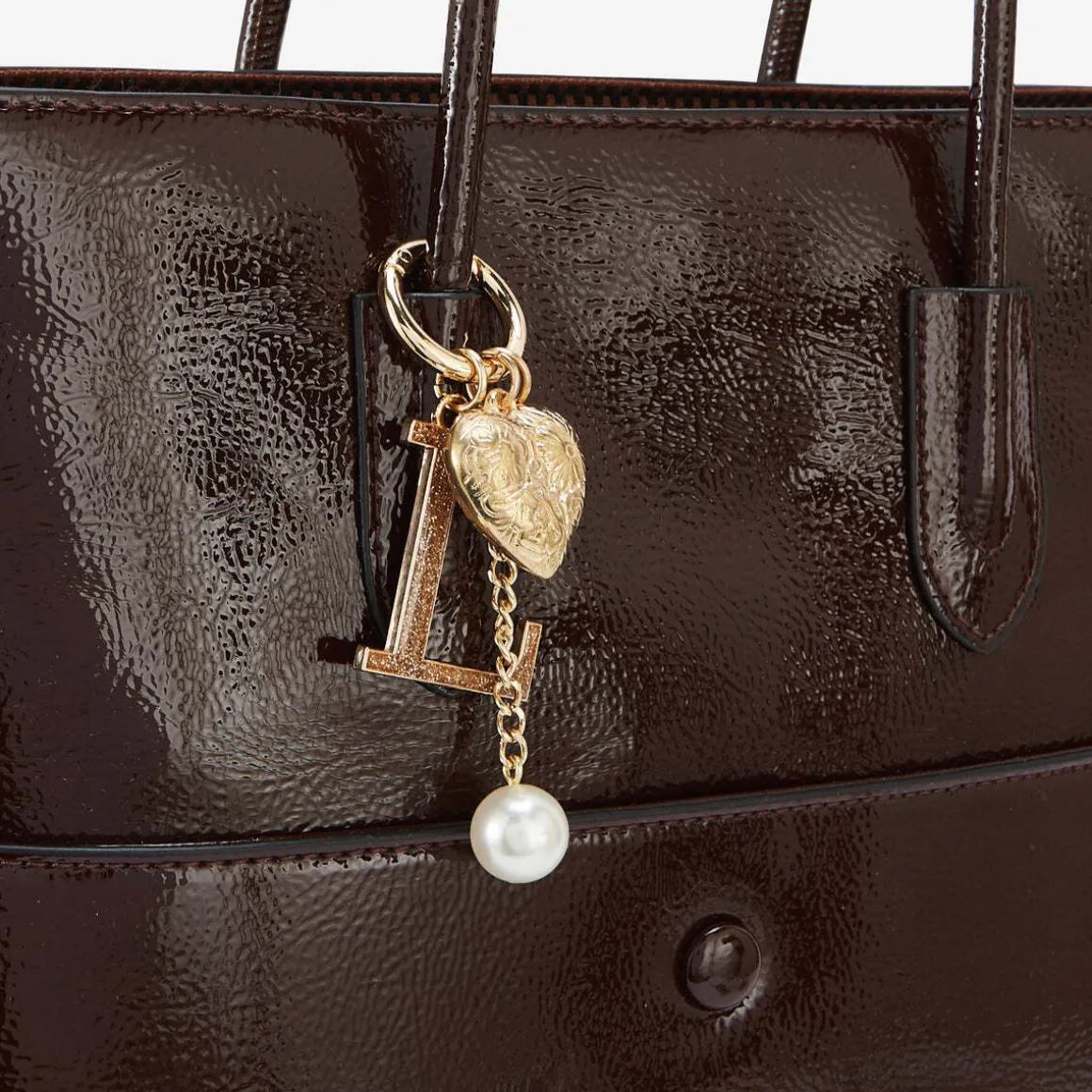 Sac shopper marron en synthétique grainé vernis2 anses porté épauleCharms L pailleté avec perle et cœurLogo Lollipops en relief à l’avantFermeture principale zippéeUne poche pressionnée à l’avantUne poche zippée à l’arrièreDeux poches plaquées et une poche zippée à l’intérieurHauteur : 32 cmLargeur : 7 cmLongueur : 30 cmCollection : Rosario