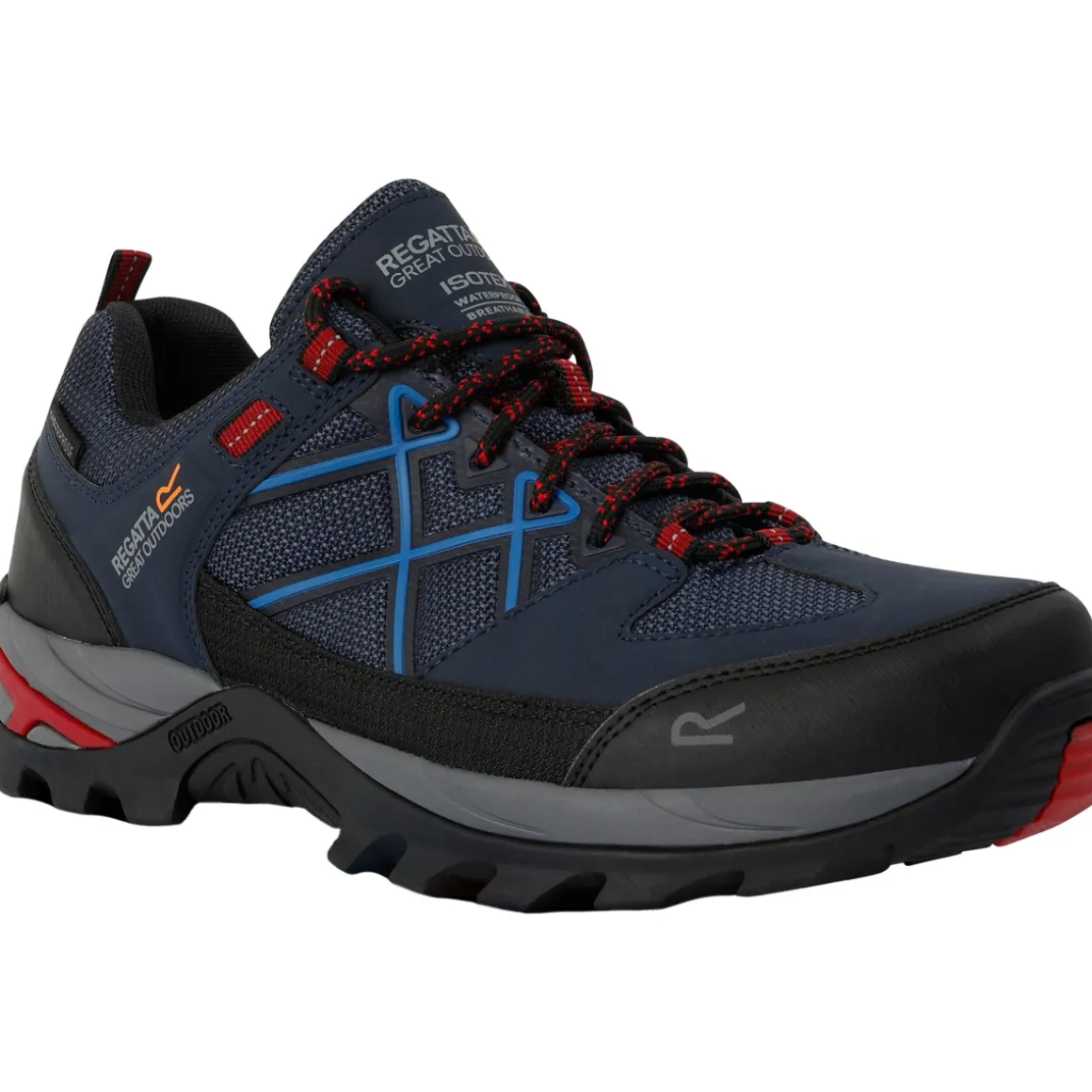 Regatta – Chaussures de marche ARIS – Homme. Design/motif: Détail contrasté, Logo, Texte. Style du bout: Arrondi. Talon: Plat. Fermeture: À lacets. Œillets: 6. Caractéristiques: Résistant aux frottements, Souple, Embouts au talon, Moulé, Col rembourré, Languette rembourrée, Boucle pour enfiler, Protection anti-éraflures, Embout aux orteils. Caractéristiques des matériaux: Respirant, Résistant, Isotex (imperméable, tête hydrostatique 3 000 mm et respirant), Imperméable, Coupe-vent. Propriétés des matériaux: Robuste. Dessus: Durable, Maille, Polyester, PU (polyuréthane), Déperlant, Hydrofuge. Semelle intérieure: TECFOAM. Semelle intermédiaire: Rembourrée, EVA (Éthylène-Acétate de Vinyle), Légère, Amortissante. Semelle extérieure: Caoutchouc, Traction adhérente. Ref: UTRG9773