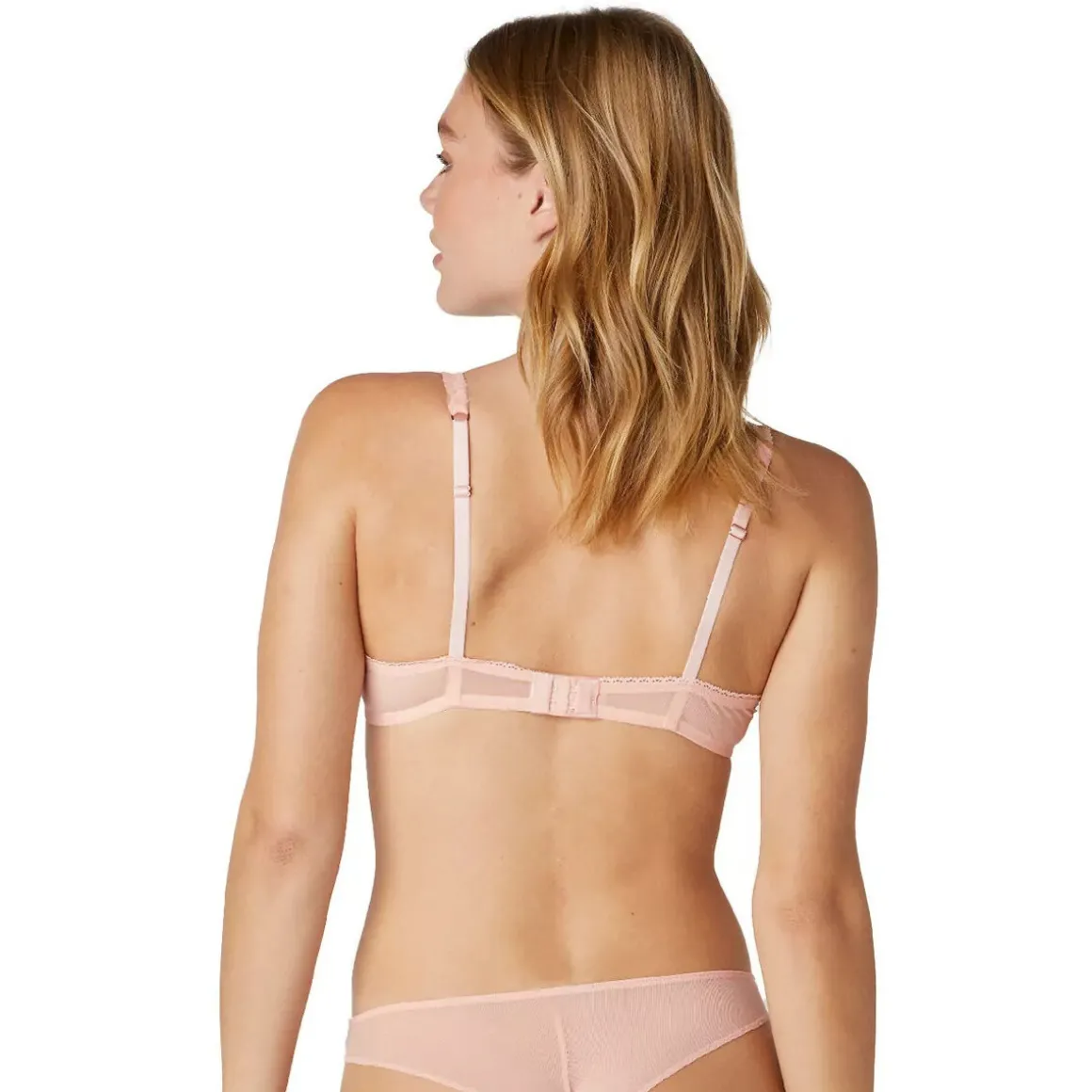 Soutien-gorge coques. Décolleté classique. Tout en tulle brodé motif coeur et petites marguerites. Bretelles froufrous fines et réglables. Fermeture dos 2 agrafes, 3 positions. Disponible du 85B au 95C.