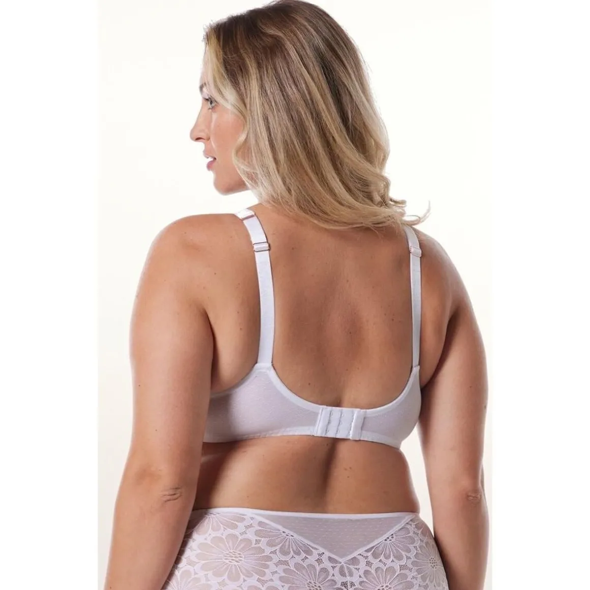 Soutien-gorge armatures grand maintien. Décolleté classique. Forme emboitante. Dentelle maxi marguerite. Tulle plumetis. Boucles mordorées siglées BB. Noeud gros-grain et aux départs de bretelles. Médaillon siglé BB sur l’aile droite. Bretelles réglables. Basque sous poitrine élastiquée. Fermeture 3 agrafes, 3 positions. Disponible du 90E au 110D.