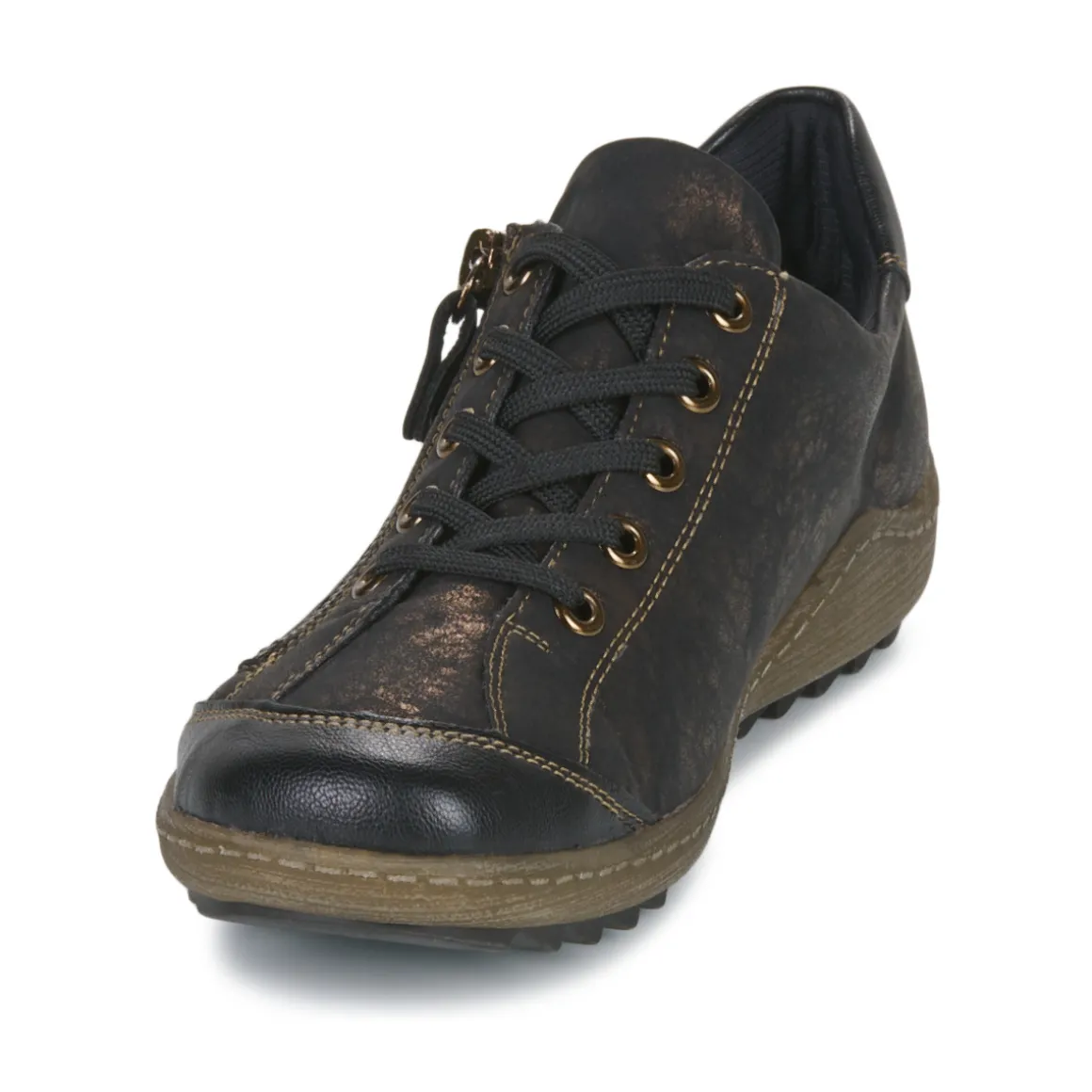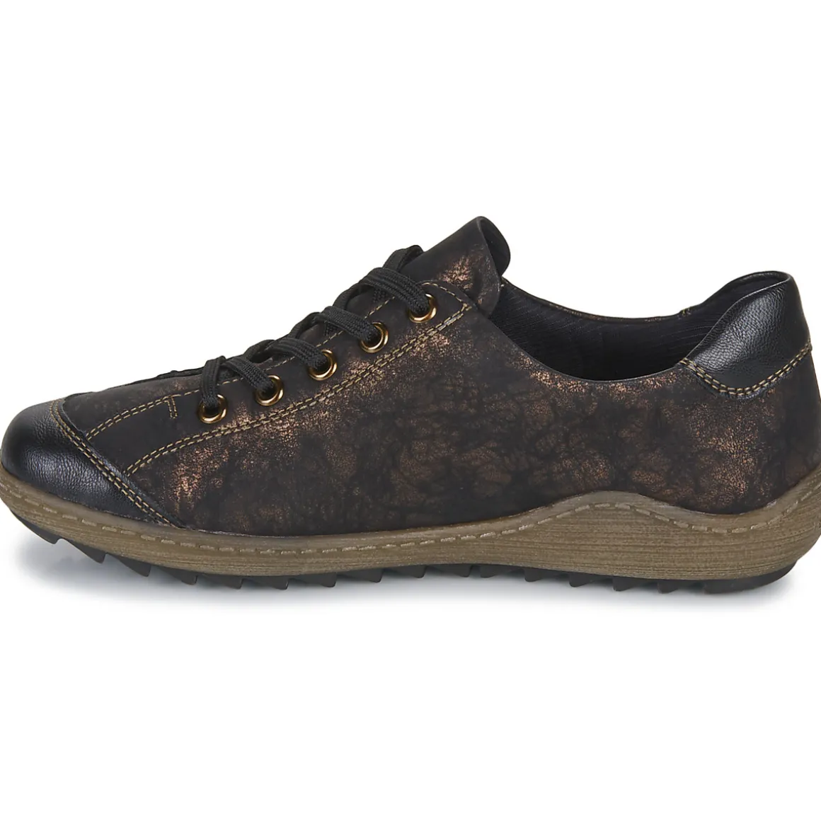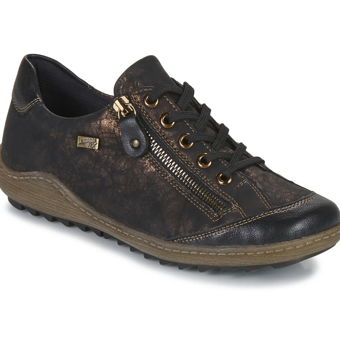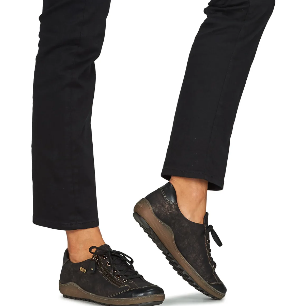 Des lignes dessinant un tracé dynamique et un esprit qui renforce son degré de tendance : cette basket montante porte l’âme Remonte Dorndorf. Du noir pour sa couleur et du synthétique pour la confection de sa tige : tels sont ses premiers attributs. A l’intérieur se cache une première de propreté en textile tandis que sa semelle est fabriquée en caoutchouc. Un modèle 100% urbain.