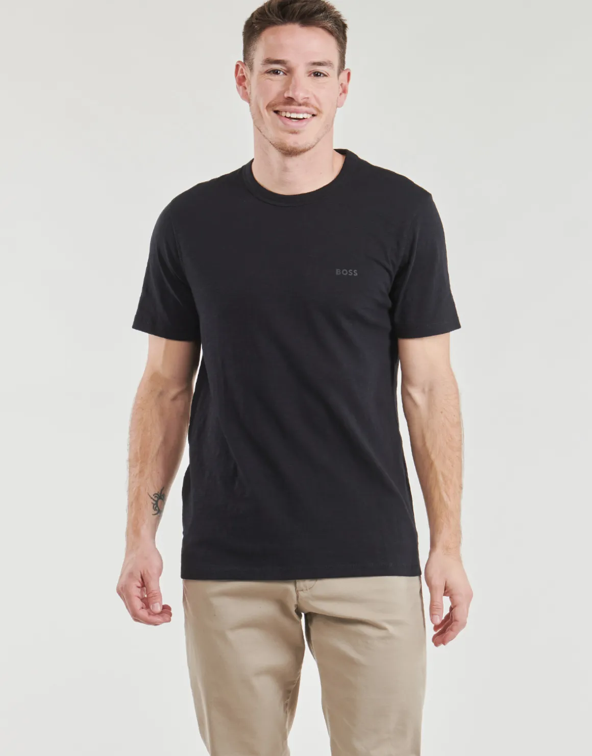 De la mode, rien que de la mode avec ce T-shirt BOSS. Un modèle qui combine coloris noir et composition en coton (100%) . Style et confort sont de mise cette saison avec ce produit masculin.