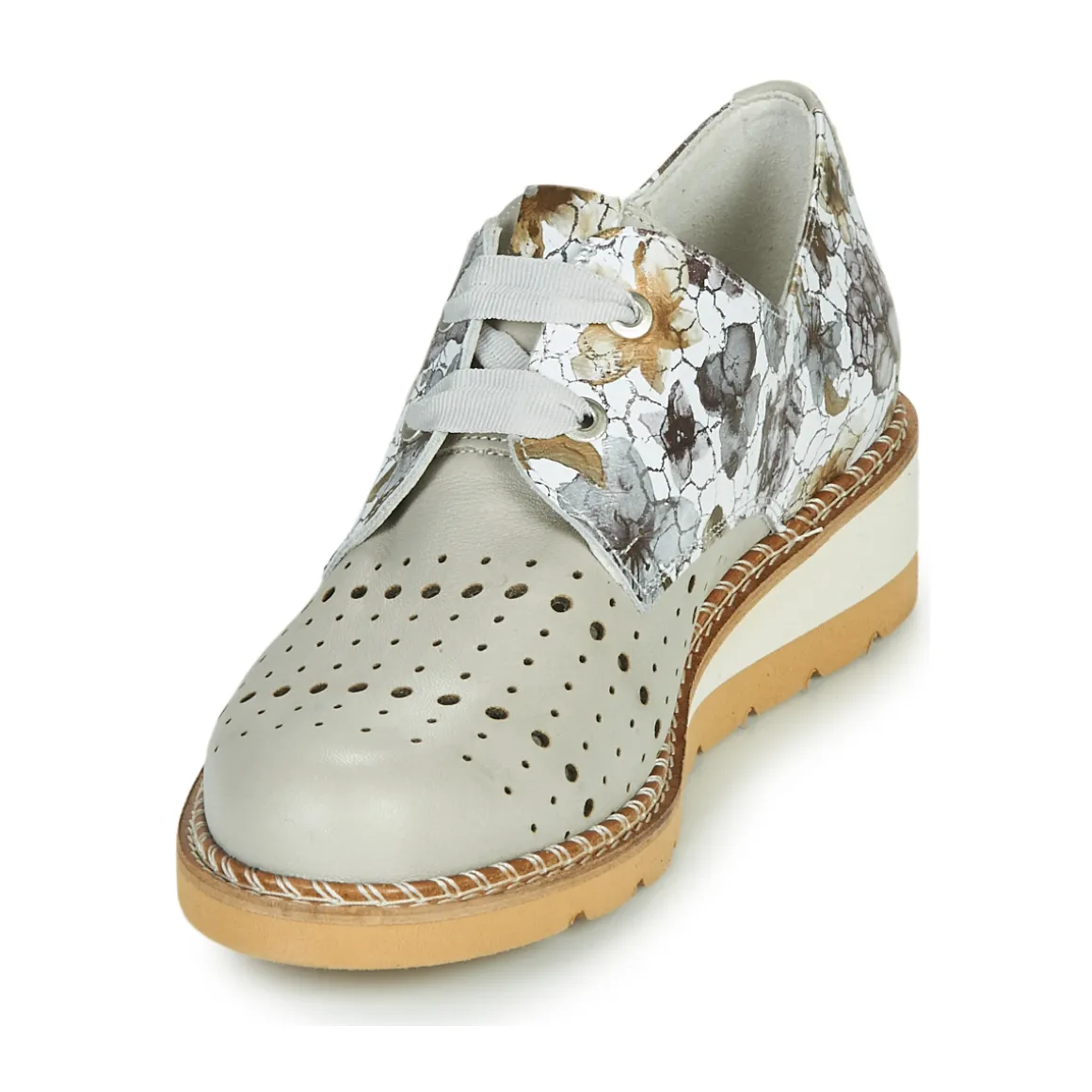 Dorking frappe à la porte des citadines en quête d’élégance et de caractère avec ce derby baptisé Tetris. Son coloris gris permet de l’associer aisément à nos tenues vestimentaires. Qualité et perfection des finitions sont au rendez-vous avec ce soulier doté d’une tige en cuir et d’une semelle en caoutchouc. Son petit plus à lui ? Un talon de 4 cm. Avec tout cela, il attisera les envies de ces dames !