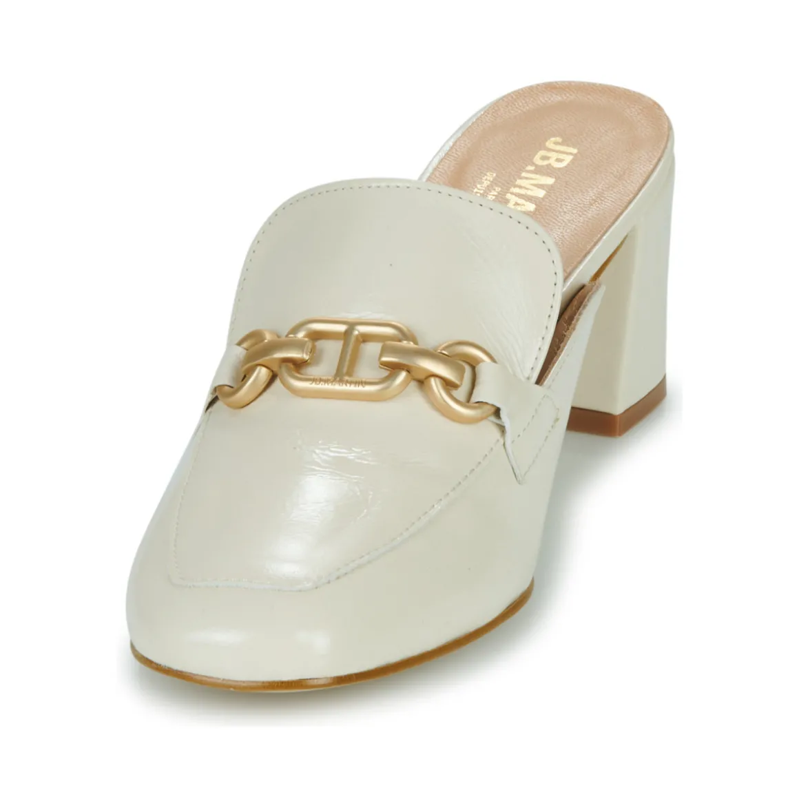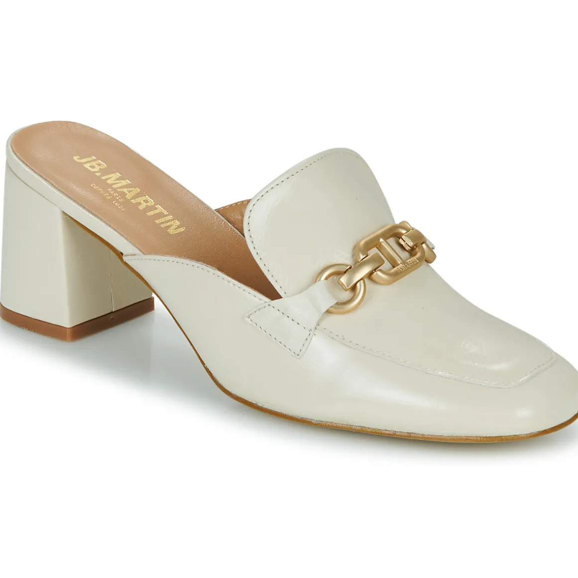 La belle marque française JB Martin signe ici une mule en cuir des plus élégantes, avec son morsetto. Son talon à la forme idéale et pas trop haut en fait un modèle parfait pour afficher une allure sophistiquée tout en assurant un confort certain.