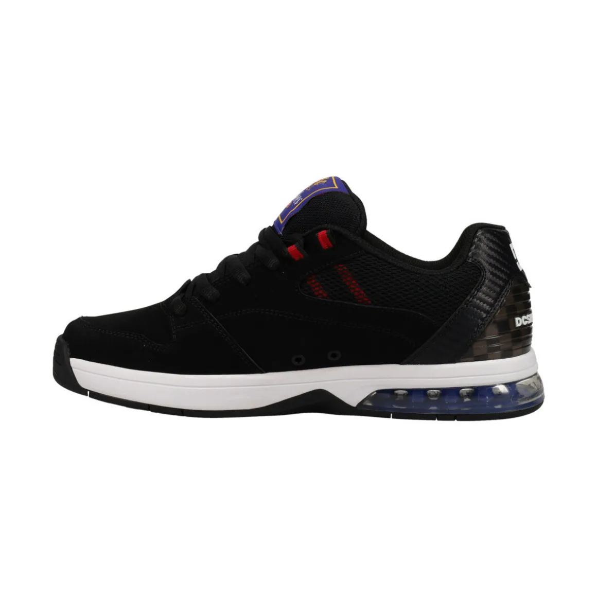 Chaussures en cuir pour Homme. Les caractéristiques produit sont les suivantes : Matière : empeigne en cuir, nubuck et/ou daim, Languette et col matelassés, Doublure en mesh, Logo brodé au quart, Contrefort moulé en TPR au niveau du talon, Semelle intermédiaire Unilite pour le confort et le maintien en toute légèreté, Coussin d’air à 180 degrés pour un meilleur amorti, Semelle intérieure IMPACT-ALG pour un meilleur amorti, Semelle extérieure en caoutchouc antidérapant résistant à l’usure et aux chocs et Semelle extérieure avec motif Pill Pattern déposé par DC.