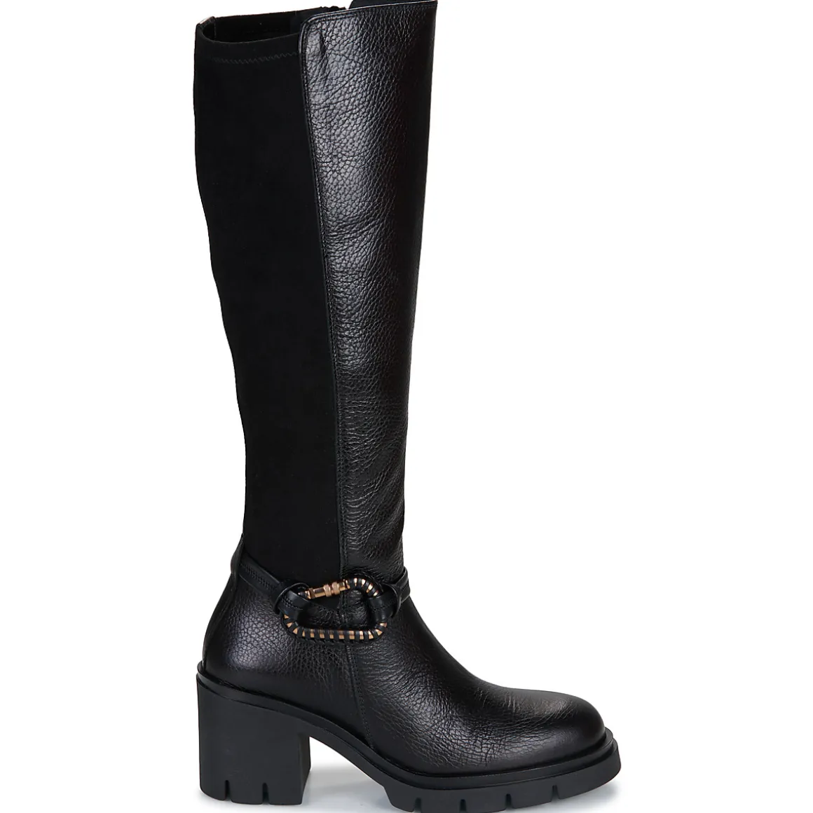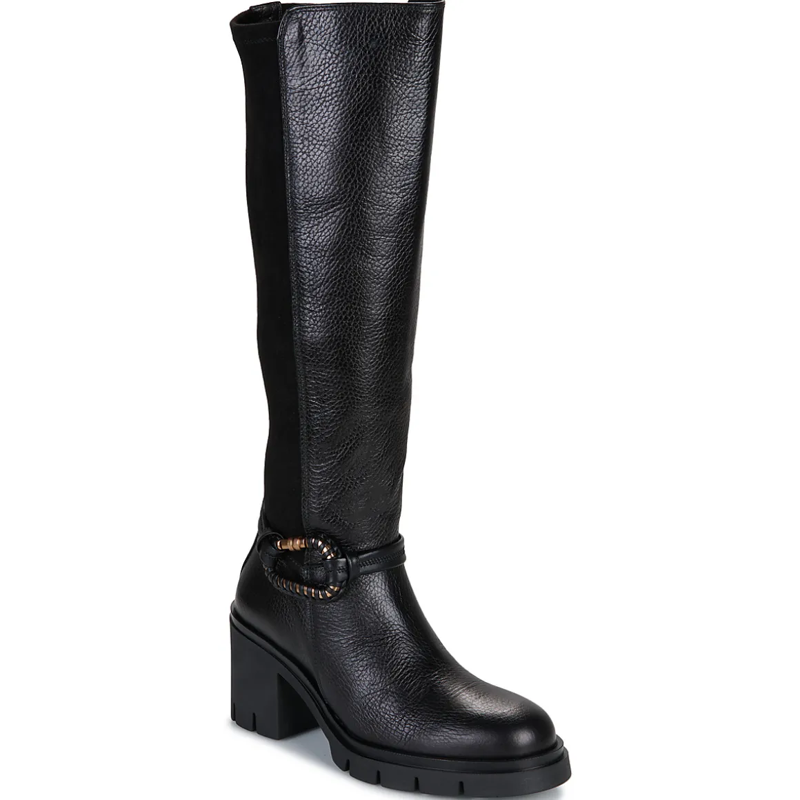 Voici une botte Hispanitas qui a su faire l’unanimité auprès de la rédaction ! Cette création en cuir et synthétique noir s’adapte à toutes les envies. Doublée en textile, elle expose également une semelle extérieure en synthétique. Montée sur un talon de 8 cm, elle est en plus ultra féminine. Un modèle qui nous suivra partout.